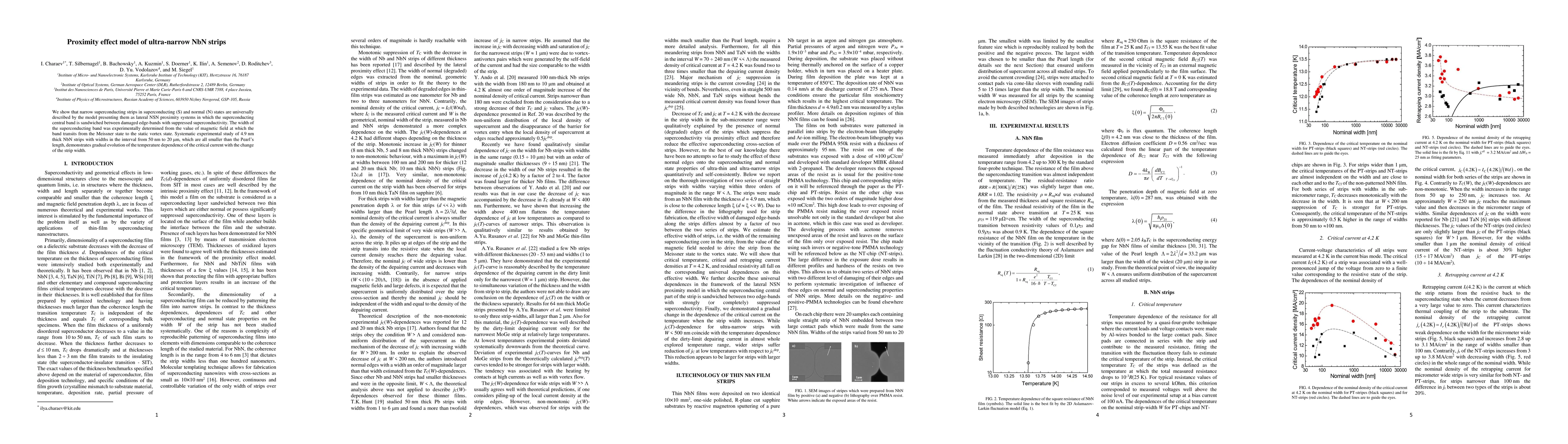 This paper presents a model for ultra-narrow NbN superconducting strips, describing them as lateral NSN proximity systems with a central superconducting band flanked by edge regions with suppressed superconductivity. Experimental results on 4.9 nm thick NbN strips show a gradual evolution in the temperature dependence of the critical current with varying strip widths.