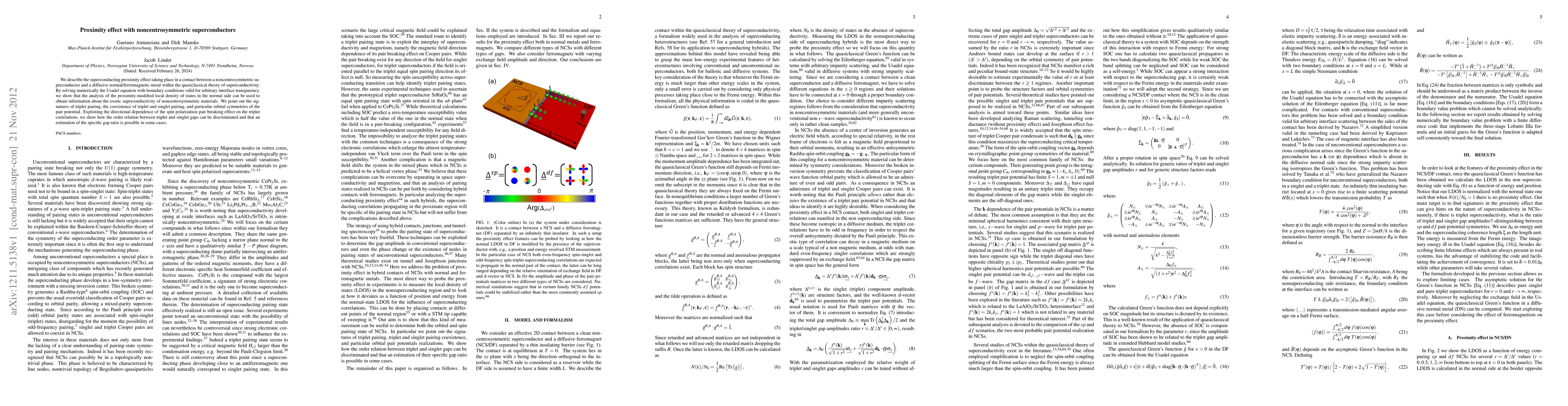 Researchers explored proximity effects in noncentrosymmetric superconductors, revealing signatures of exotic pairing and possible gap ratios. They used numerical simulations to analyze the local density of states and gain insights into triplet and singlet correlations.