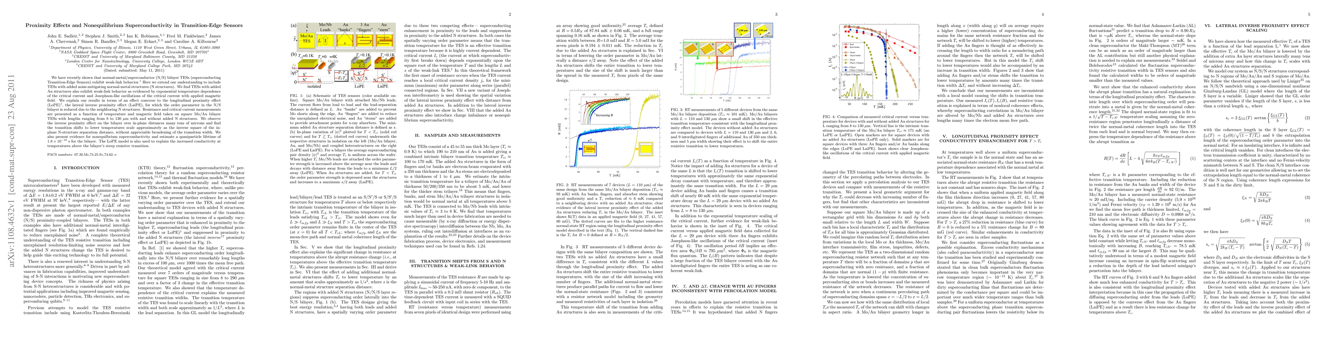 This paper investigates the weak-link behavior in normal-metal/superconductor (N/S) bilayer transition-edge sensors (TESs) with added Au structures, revealing an inverse proximity effect that reduces the order parameter due to neighboring N structures. The study also presents evidence for nonequilibrium superconductivity and estimates a quasiparticle lifetime of 1.8 × 10^-10 s for the bilayer.