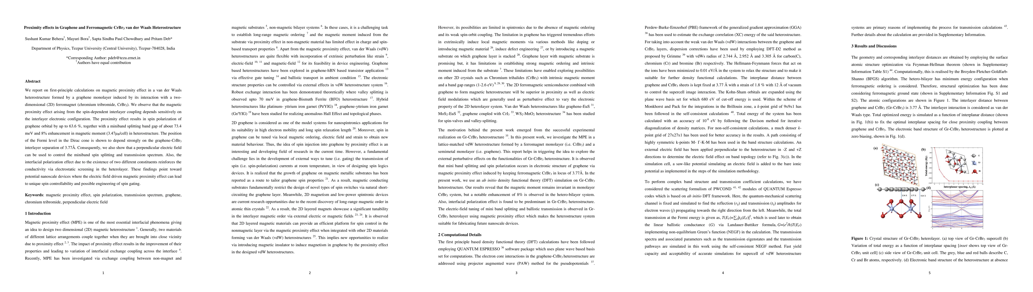 This study reports first-principle calculations on magnetic proximity effects in a graphene-CrBr3 heterostructure, revealing spin polarization in graphene, miniband splitting, and enhanced magnetic moment. The findings suggest electric field control over spin splitting and potential for nanoscale spin control devices.