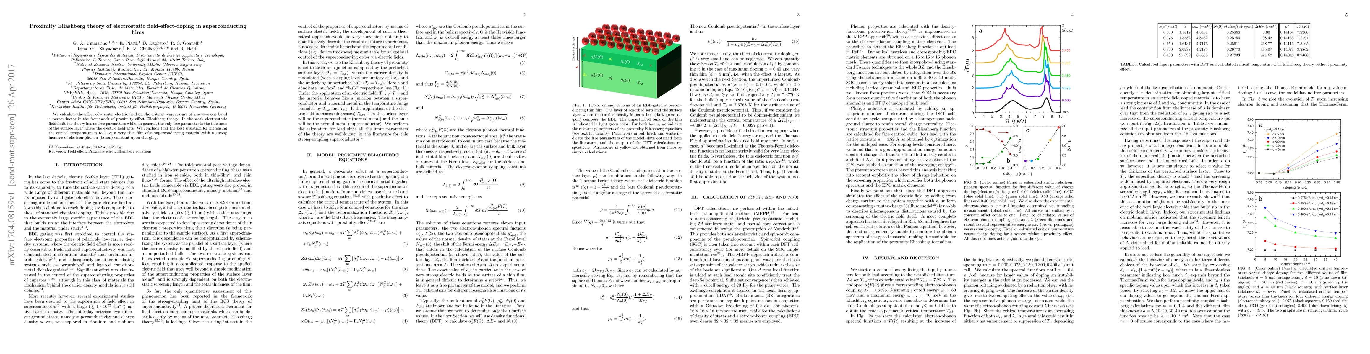 We calculate the effect of a static electric field on the critical temperature of a s-wave one band superconductor in the framework of proximity effect Eliashberg theory. In the weak electrostatic field limit the theory has no free parameters while, in general, the only free parameter is the thickness of the surface layer where the electric field acts. We conclude that the best situation for increasing the critical temperature is to have a very thin film of a superconducting material with a strong increase of electron-phonon (boson) constant upon charging.