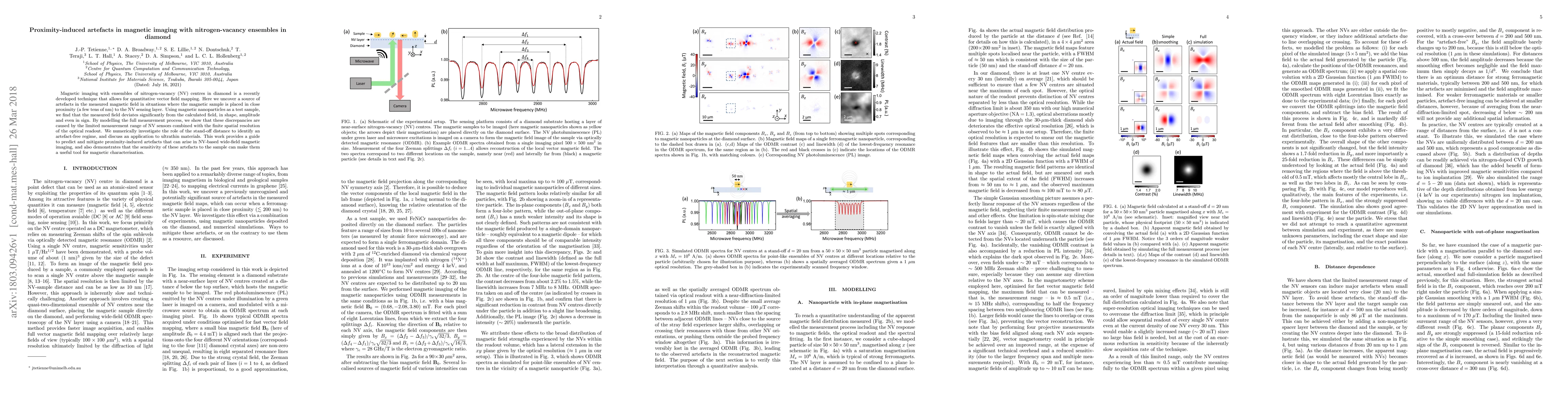 Magnetic imaging with ensembles of nitrogen-vacancy (NV) centres in diamond is a recently developed technique that allows for quantitative vector field mapping. Here we uncover a source of artefacts in the measured magnetic field in situations where the magnetic sample is placed in close proximity (a few tens of nm) to the NV sensing layer. Using magnetic nanoparticles as a test sample, we find that the measured field deviates significantly from the calculated field, in shape, amplitude and even in sign. By modelling the full measurement process, we show that these discrepancies are caused by the limited measurement range of NV sensors combined with the finite spatial resolution of the optical readout. We numerically investigate the role of the stand-off distance to identify an artefact-free regime, and discuss an application to ultrathin materials. This work provides a guide to predict and mitigate proximity-induced artefacts that can arise in NV-based wide-field magnetic imaging, and also demonstrates that the sensitivity of these artefacts to the sample can make them a useful tool for magnetic characterisation.