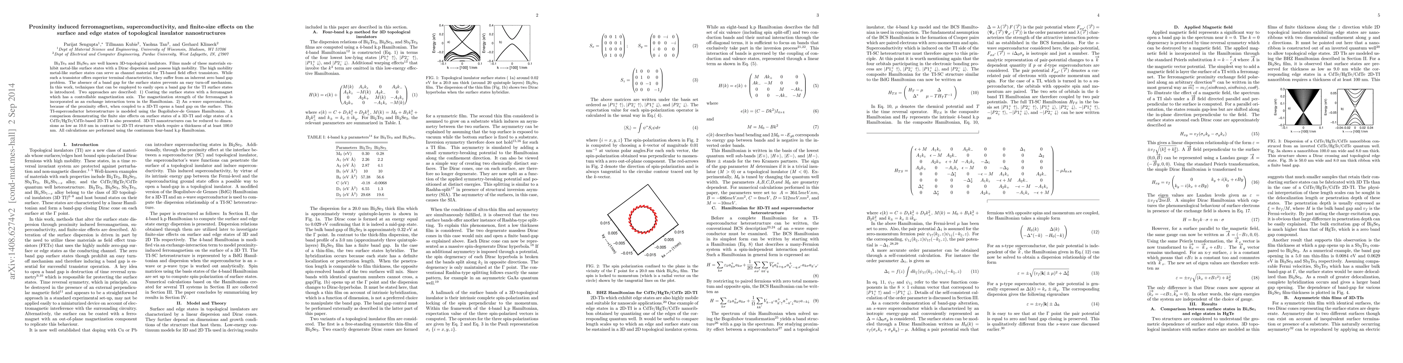 Researchers found ways to induce ferromagnetism and superconductivity in topological insulator nanostructures to open a band gap, making them suitable for field effect transistors and potential applications.