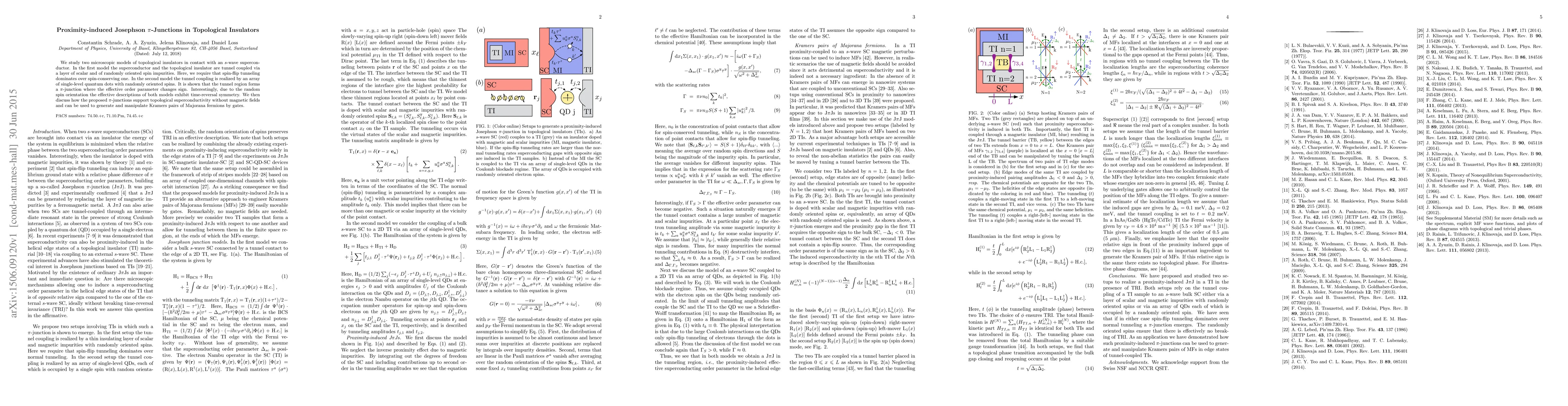 This paper investigates two models of topological insulators coupled to superconductors, revealing the formation of proximity-induced $\pi$-junctions. Both models support topological superconductivity and Majorana fermions, facilitated by time-reversal symmetry from random spin orientations.