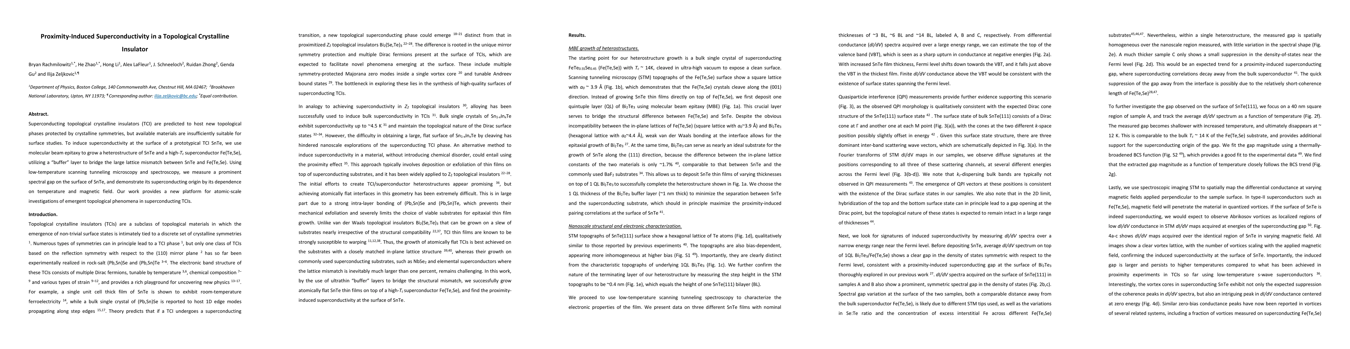 This research uses molecular beam epitaxy to grow a heterostructure of SnTe and a high-Tc superconductor Fe(Te,Se), demonstrating proximity-induced superconductivity on the surface of SnTe. Low-temperature scanning techniques reveal a superconducting gap, indicating a new platform for studying topological phenomena in superconducting topological crystalline insulators.