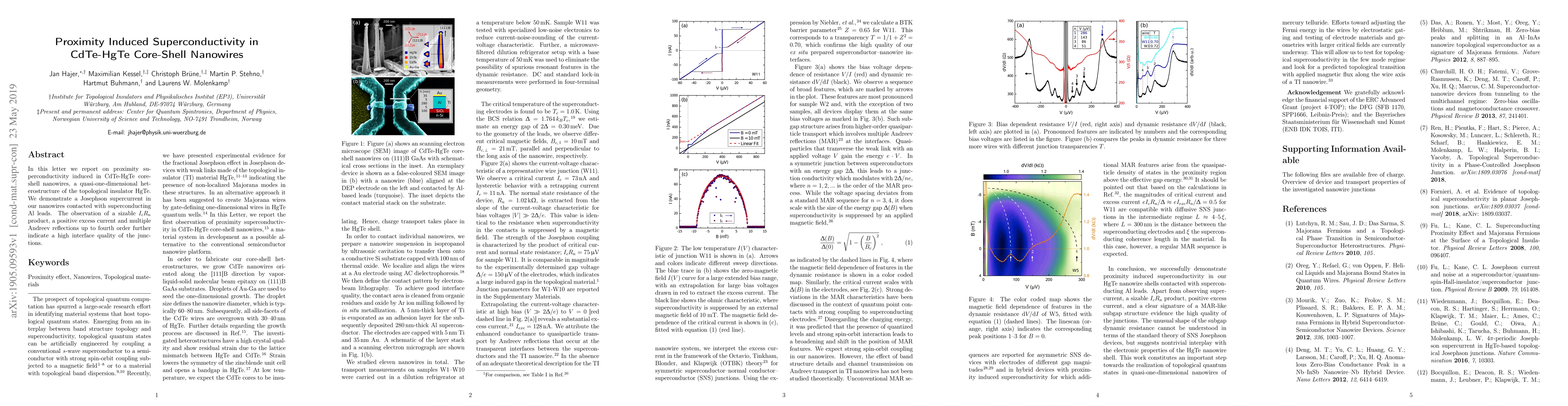 This study reports on the induction of superconductivity in CdTe-HgTe core-shell nanowires through proximity effect, revealing a Josephson supercurrent and multiple Andreev reflections, which suggest high-quality interfaces between the nanowires and superconducting Al leads. The sizable $I_c R_n$ product and positive excess current further confirm the effective superconductivity.