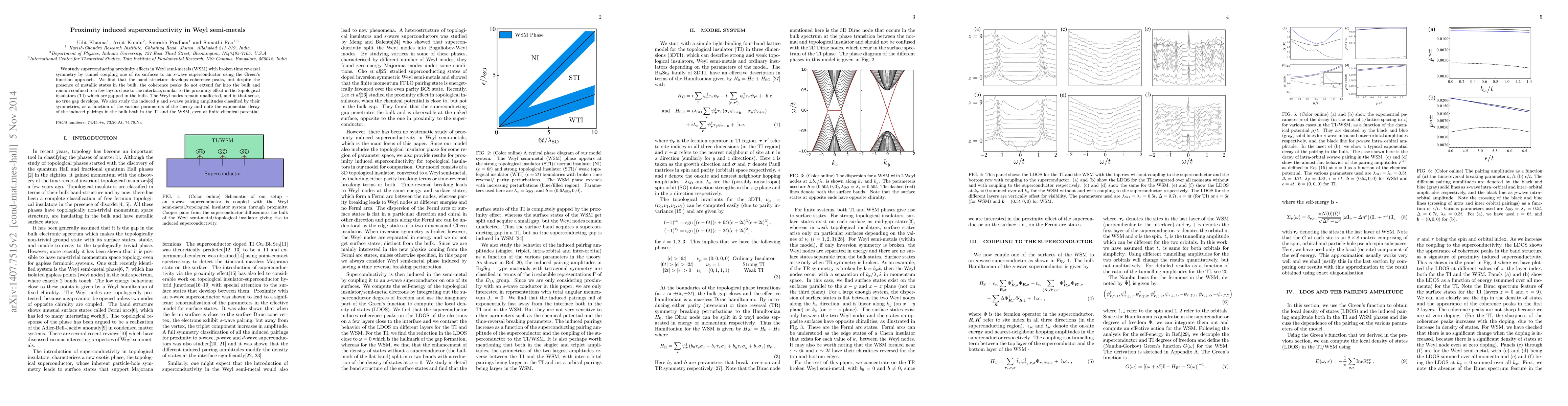 This paper investigates superconducting proximity effects in Weyl semi-metals, revealing that coherence peaks develop near the interface when coupled to an s-wave superconductor, but do not penetrate deeply into the bulk. The Weyl nodes remain unaffected, indicating no true gap formation, and the induced pairing amplitudes decay exponentially in the bulk.