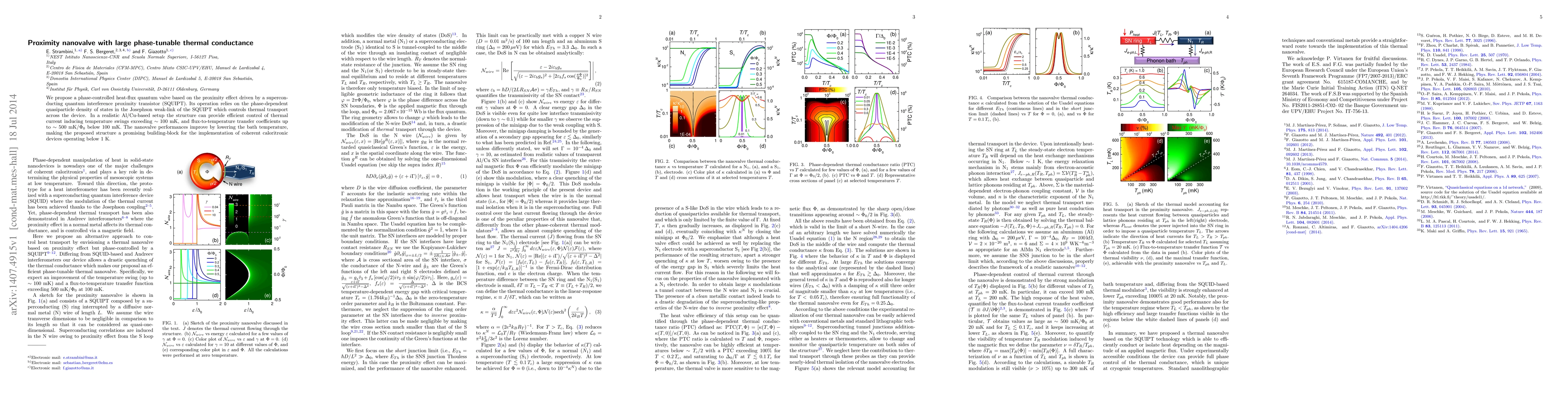 This paper proposes a phase-controlled nanovalve utilizing the proximity effect in a superconducting quantum interference proximity transistor (SQUIPT) to manage thermal conductance. The device can induce significant temperature variations and high flux-to-temperature transfer coefficients, making it a potential component for low-temperature caloritronic devices.
