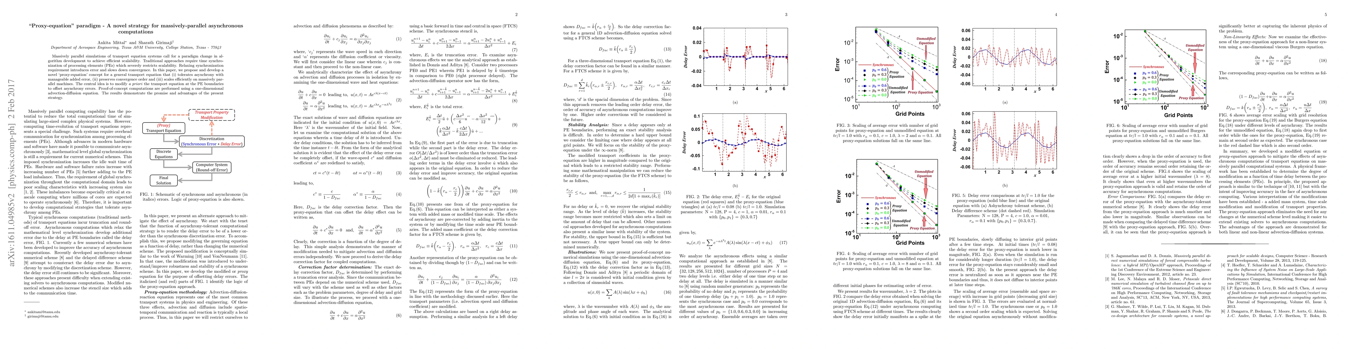 This paper proposes a novel `proxy-equation' paradigm to enable massively-parallel asynchronous computations for transport equation systems, achieving scalable efficiency by modifying transport equations at processing element boundaries to manage asynchrony errors while preserving convergence order. Proof-of-concept results using a one-dimensional advection-diffusion equation show the effectiveness of this approach.