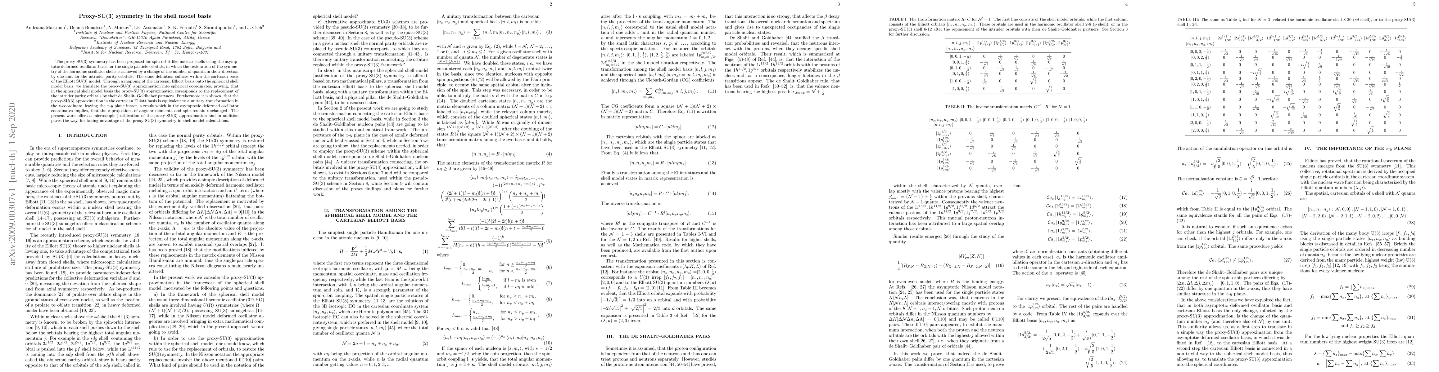 The paper proposes the proxy-SU(3) symmetry for spin-orbit nuclear shells, mapping it from the cartesian Elliott SU(3) model to the spherical shell model basis. This symmetry is justified microscopically and shown to be equivalent to a unitary transformation in the z-coordinate, preserving the z-projections of angular momenta and spin.