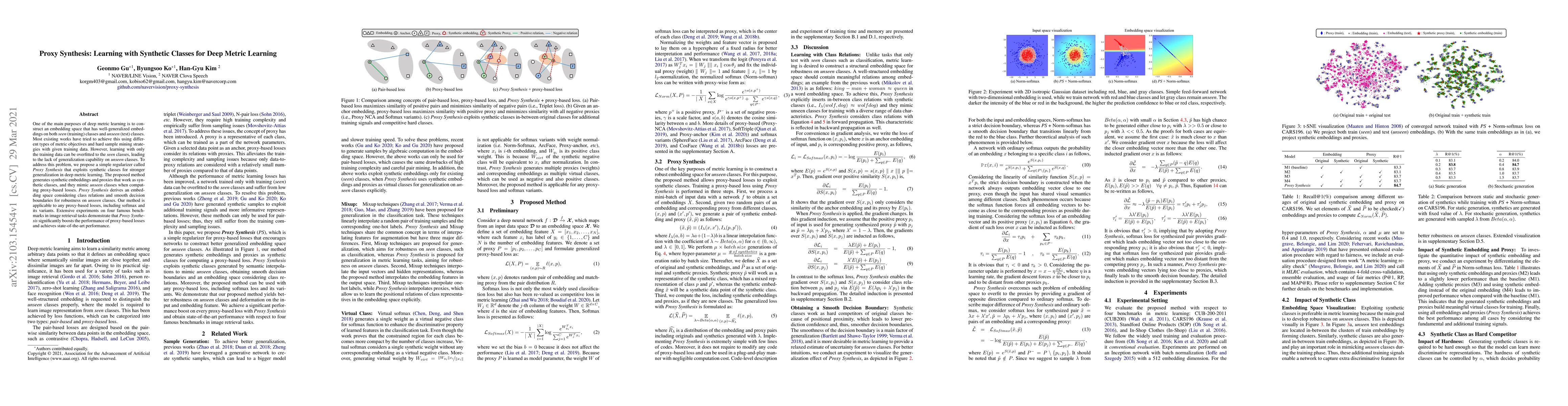 Proxy Synthesis introduces a regularizer that leverages synthetic classes to enhance generalization in deep metric learning, addressing overfitting to seen classes. This method generates synthetic embeddings and proxies to mimic unseen classes, improving robustness and achieving state-of-the-art performance on image retrieval benchmarks.