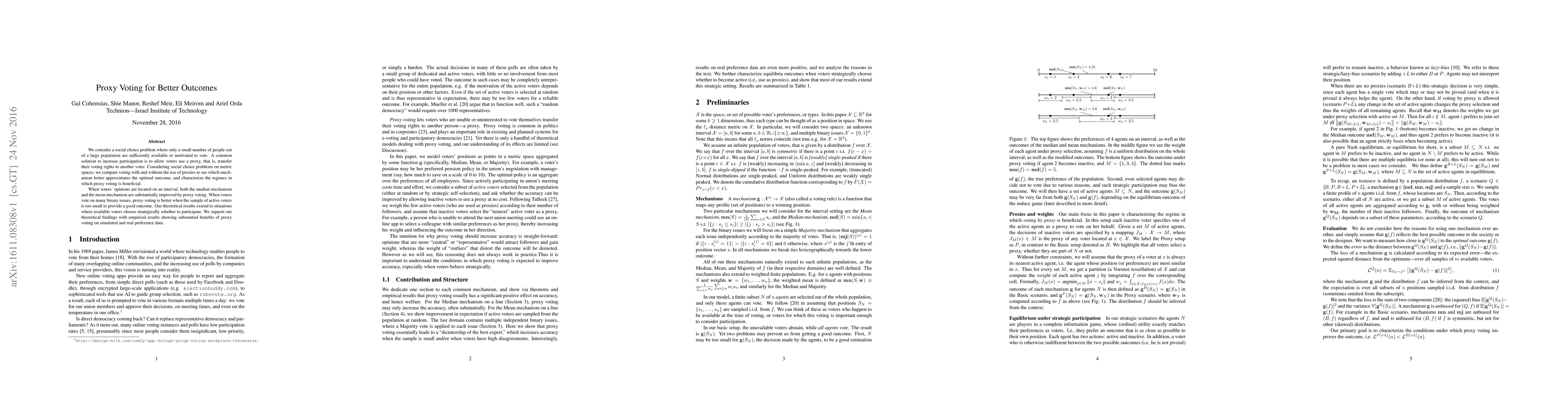 This paper examines the use of proxy voting to enhance participation in social choice problems, finding that it significantly improves median and mean mechanisms when opinions are on an interval. It also shows that proxy voting is beneficial when a small sample of active voters cannot provide a good outcome, supported by both theoretical and empirical results.