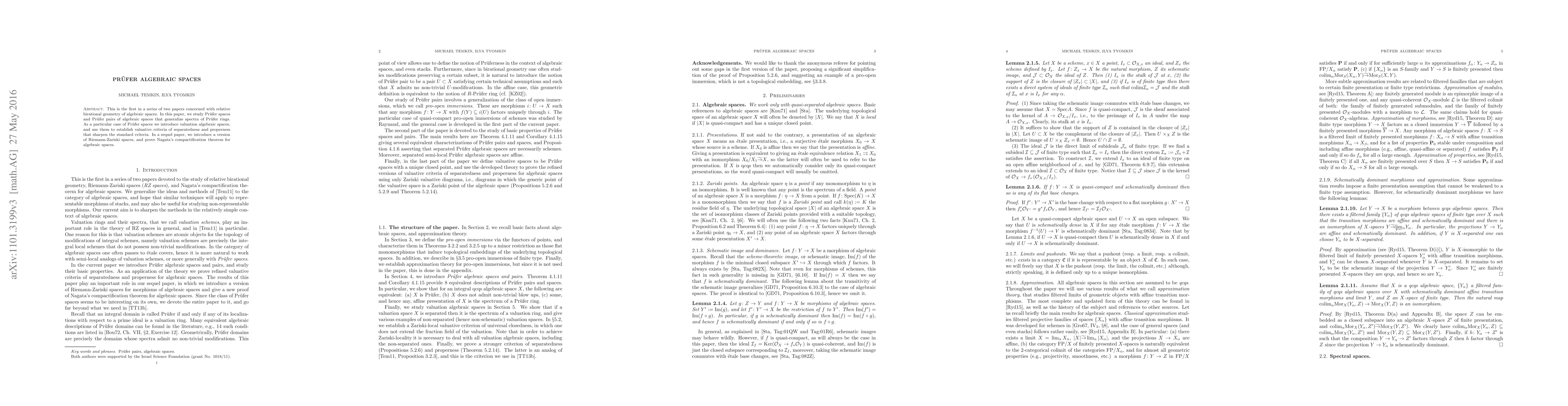 This paper introduces Pr\"ufer algebraic spaces and pairs, generalizing spectra of Pr\"ufer rings, and establishes a sharpened valuative criterion of universal closedness using valuation algebraic spaces. The sequel will extend this work to Riemann-Zariski spaces and prove the Nagata compactification theorem for algebraic spaces.