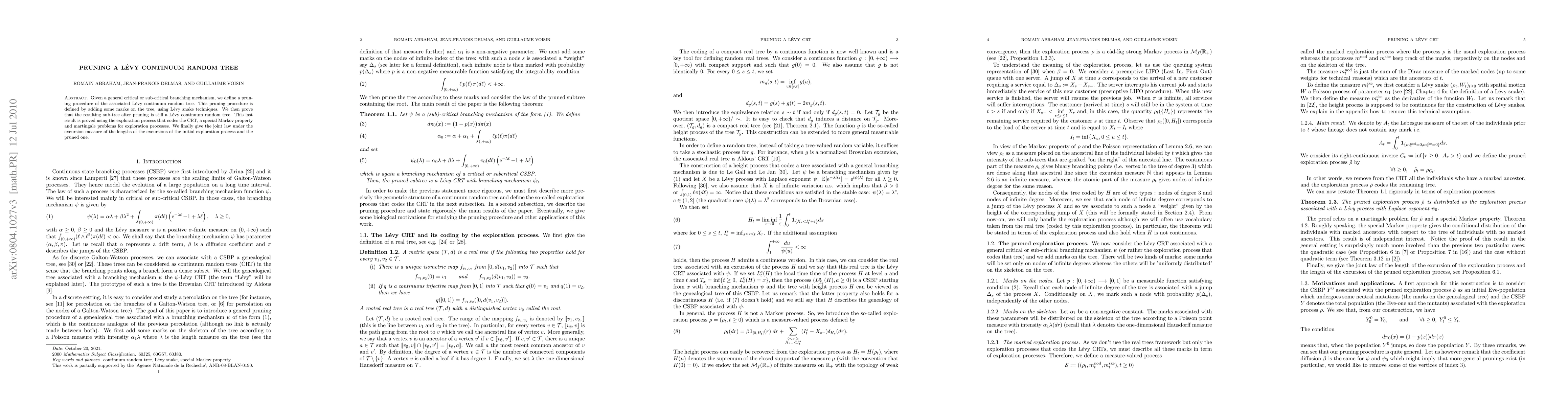 This paper defines a pruning procedure for a Lévy continuum random tree (CRT) by adding marks using Lévy snake techniques, proving that the pruned sub-tree remains a CRT, and provides the joint law of the lengths of excursions in the initial and pruned exploration processes.