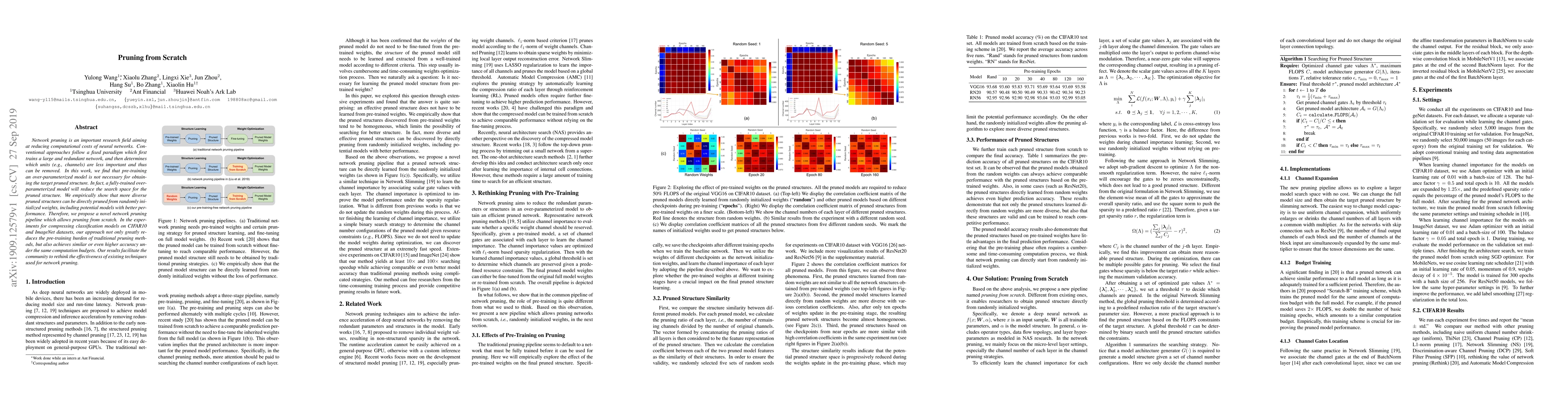 This research introduces a novel network pruning method that eliminates the need for pre-training large, redundant networks. By directly pruning from randomly initialized weights, the method discovers diverse pruned structures, potentially improving model performance. Experiments on CIFAR10 and ImageNet show that this approach reduces pre-training burden and achieves similar or higher accuracy under the same computation budgets, challenging existing pruning techniques.