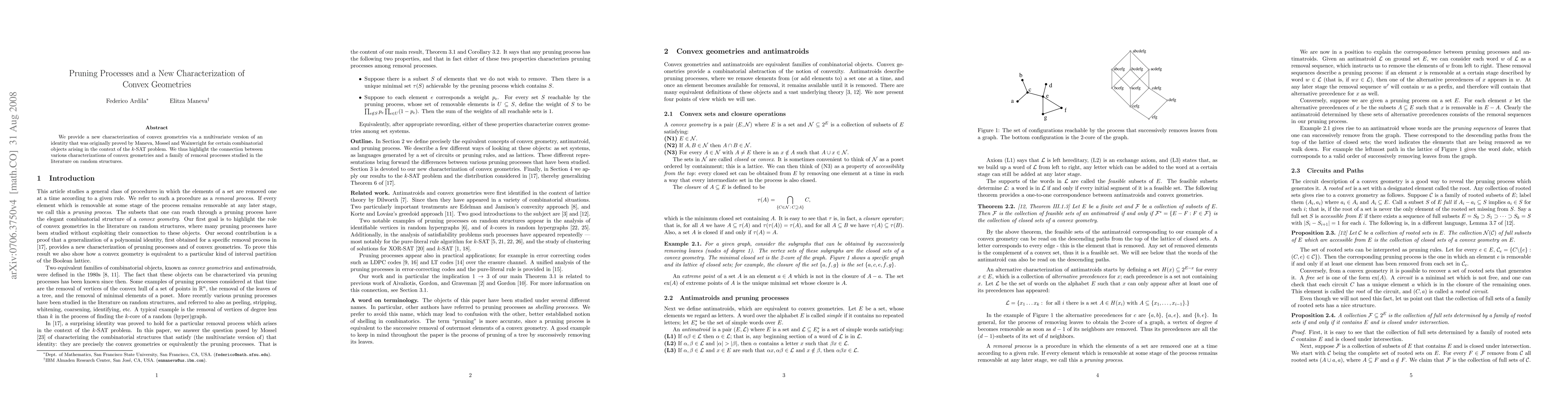 This paper introduces a new characterization of convex geometries using a multivariate identity, originally developed for combinatorial objects in k-SAT problems, and highlights its connection to removal processes in random structures.