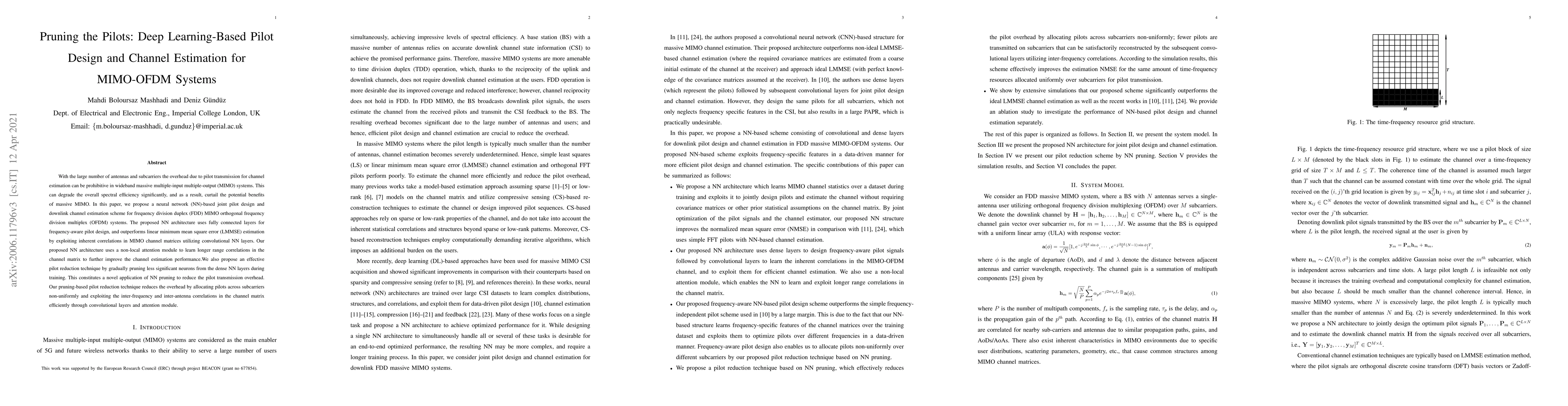 This paper proposes a deep learning-based approach for joint pilot design and channel estimation in MIMO-OFDM systems, utilizing neural networks to outperform traditional methods and reduce pilot transmission overhead through a novel pruning technique. The neural network architecture leverages convolutional layers and attention modules to exploit channel correlations and improve spectral efficiency.