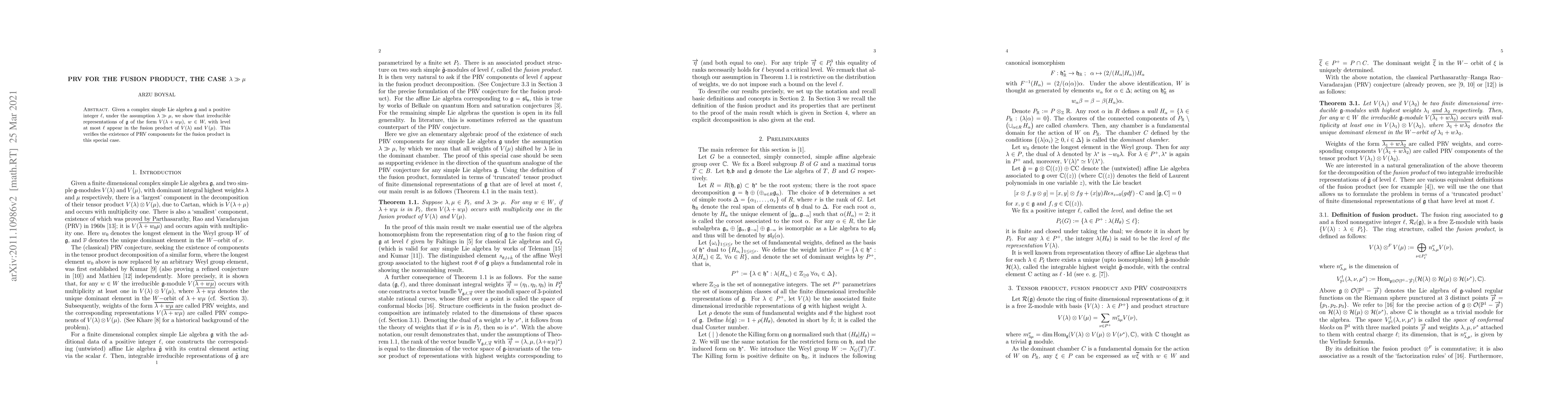 Given a complex simple Lie algebra $\mathfrak{g}$ and a positive integer $\ell$, under the assumption $\lambda\gg\mu$, we show that irreducible representations of $\mathfrak{g}$ of the form $V(\lambda +w\mu)$, $w\in W,$ with level at most $\ell$ appear in the fusion product of $V(\lambda)$ and $V(\mu)$. This verifies the existence of PRV components for the fusion product in this special case.