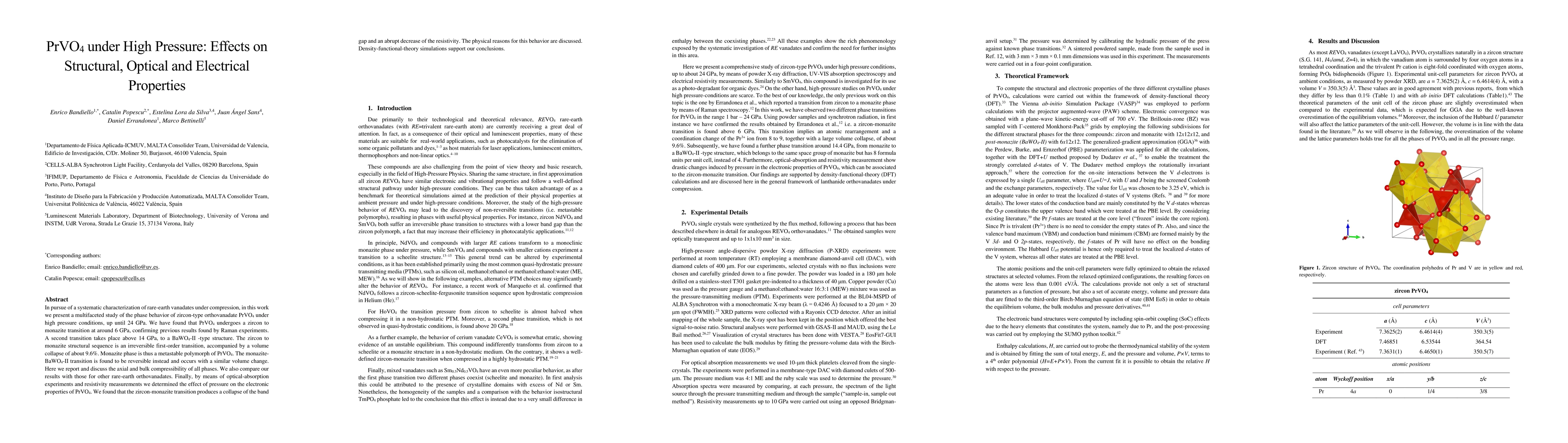This study investigates the high-pressure phase transitions of PrVO$_4$, revealing a zircon to monazite transition at 6 GPa and a subsequent monazite to BaWO$_4$-II transition above 14 GPa. The research also explores the structural, optical, and electrical properties, finding that the zircon-monazite transition leads to a band gap collapse and significant resistivity decrease.