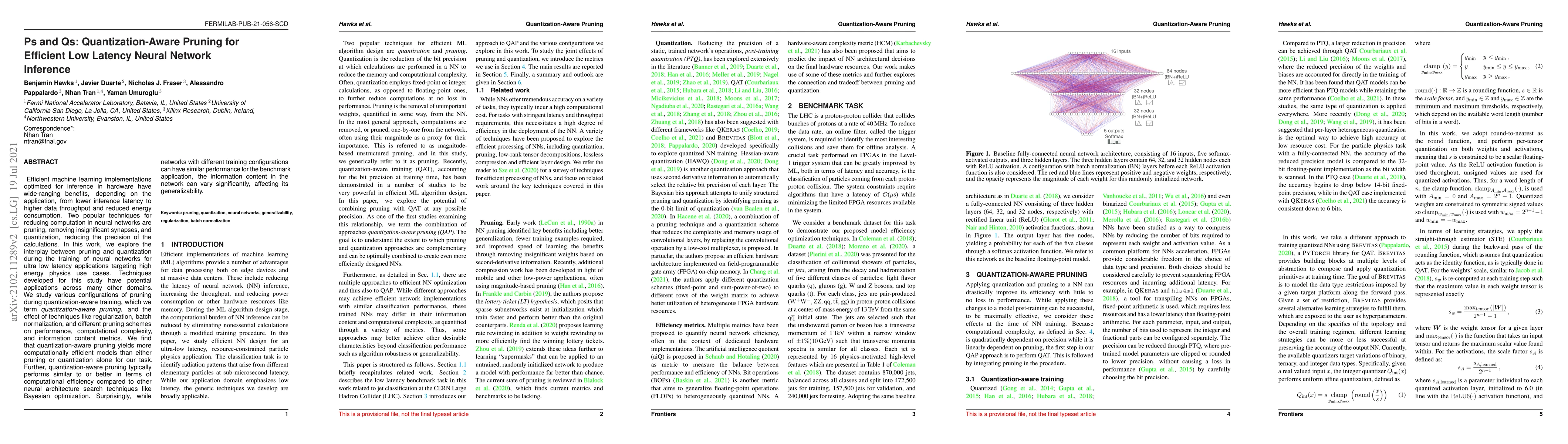 This research investigates quantization-aware pruning to optimize neural networks for low latency inference, achieving greater computational efficiency than either pruning or quantization alone. The study reveals that despite similar performance, different training configurations can lead to networks with varying information content, impacting generalizability.
