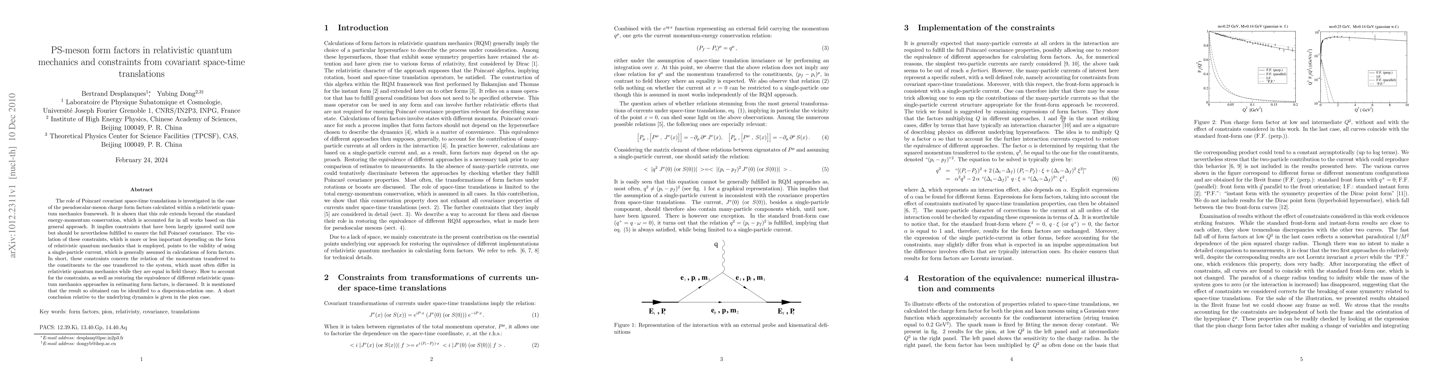 This paper investigates the role of Poincaré covariant space-time translations in pseudoscalar-meson form factors within relativistic quantum mechanics, revealing constraints that ensure full Poincaré covariance. It discusses how these constraints, often overlooked, affect the validity of single-particle current assumptions and proposes methods to restore equivalence among different relativistic quantum mechanics approaches.