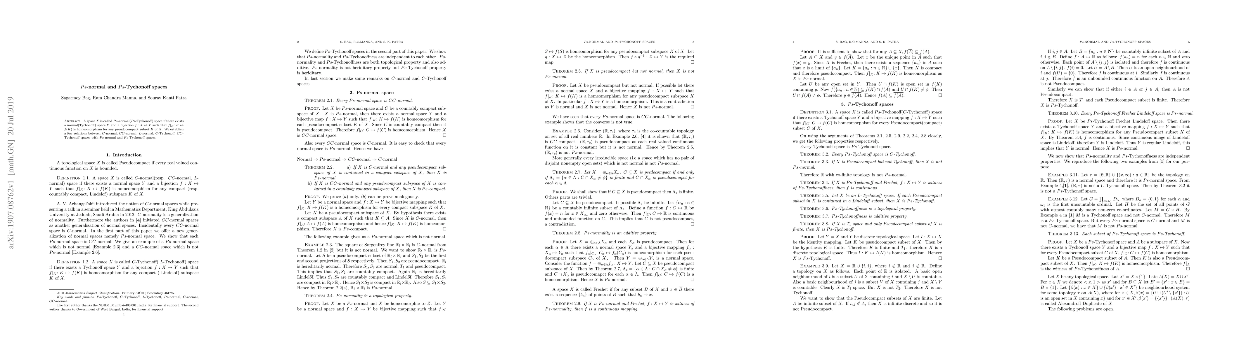 This paper defines $Ps$-normal and $Ps$-Tychonoff spaces and establishes their relationships with $C$-normal, $CC$-normal, $L$-normal, and $C$-Tychonoff spaces, showing how these topological properties interrelate.