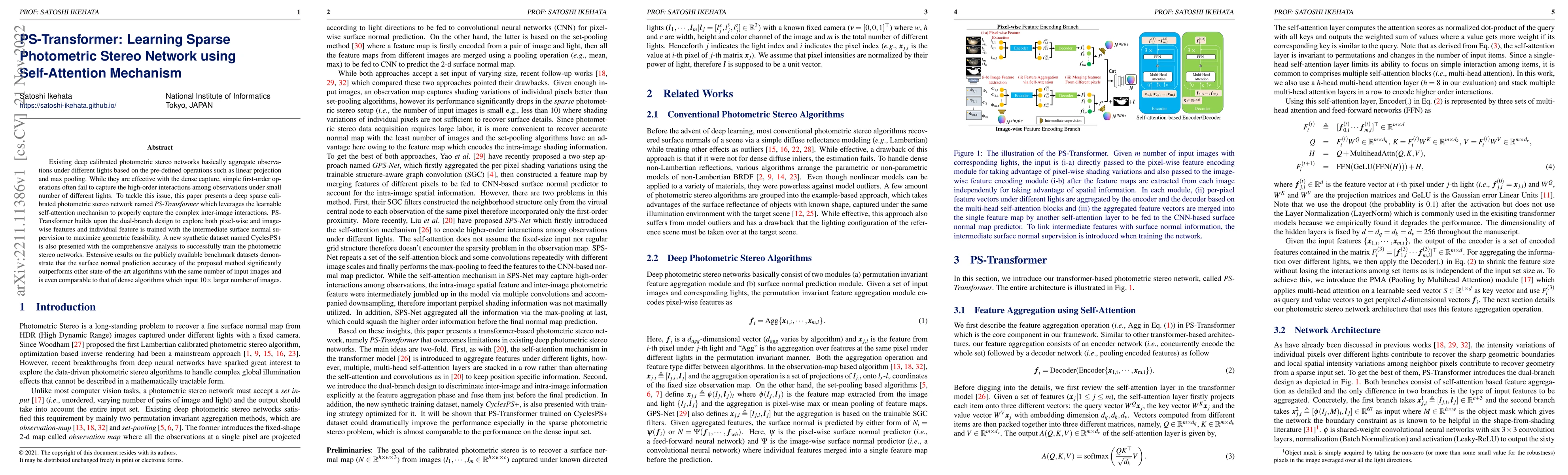 This paper introduces PS-Transformer, a sparse photometric stereo network utilizing self-attention to capture complex inter-image interactions, outperforming existing dense networks in surface normal prediction accuracy even with fewer input images. The method employs a dual-branch design and a new synthetic dataset, CyclesPS+, for training.