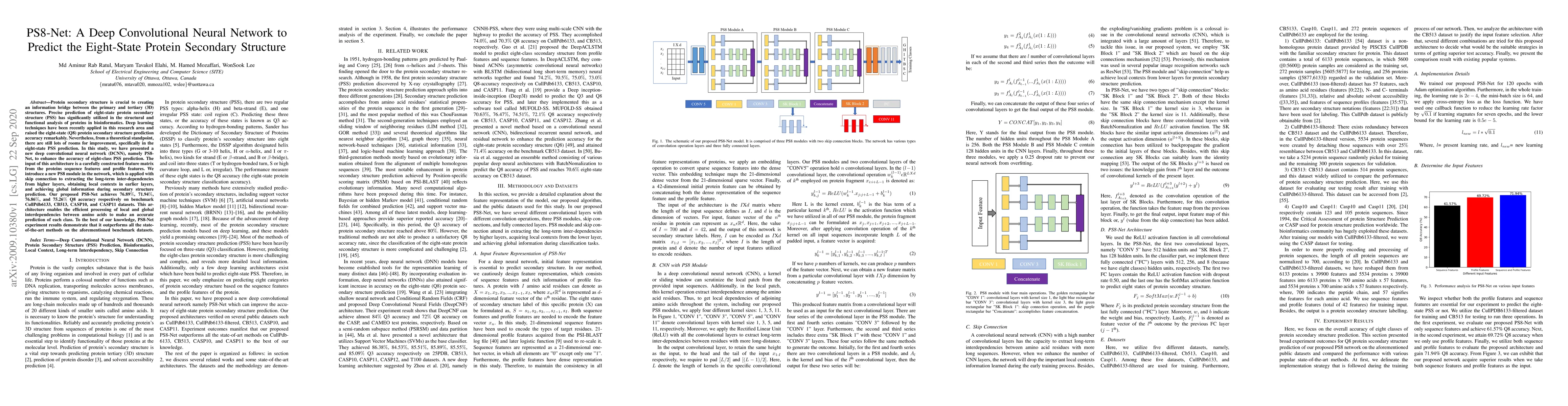PS8-Net is a novel deep convolutional neural network designed to predict the eight-state protein secondary structure, achieving high accuracy on benchmark datasets. It incorporates a new PS8 module with skip connections to efficiently process local and global interdependencies, outperforming existing methods.