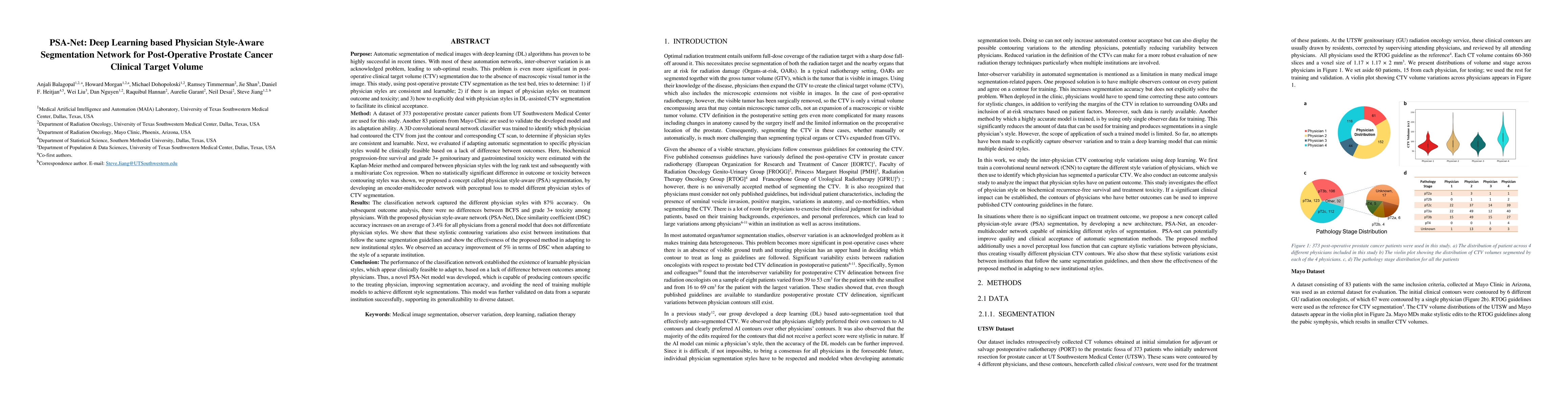 This paper proposes PSA-Net, a deep learning-based network for physician style-aware segmentation of post-operative prostate cancer clinical target volumes, aiming to address inter-observer variation. The study demonstrates a 3.4% average increase in Dice similarity coefficient accuracy compared to a general model, and a 5% improvement when adapting to different institutional styles.