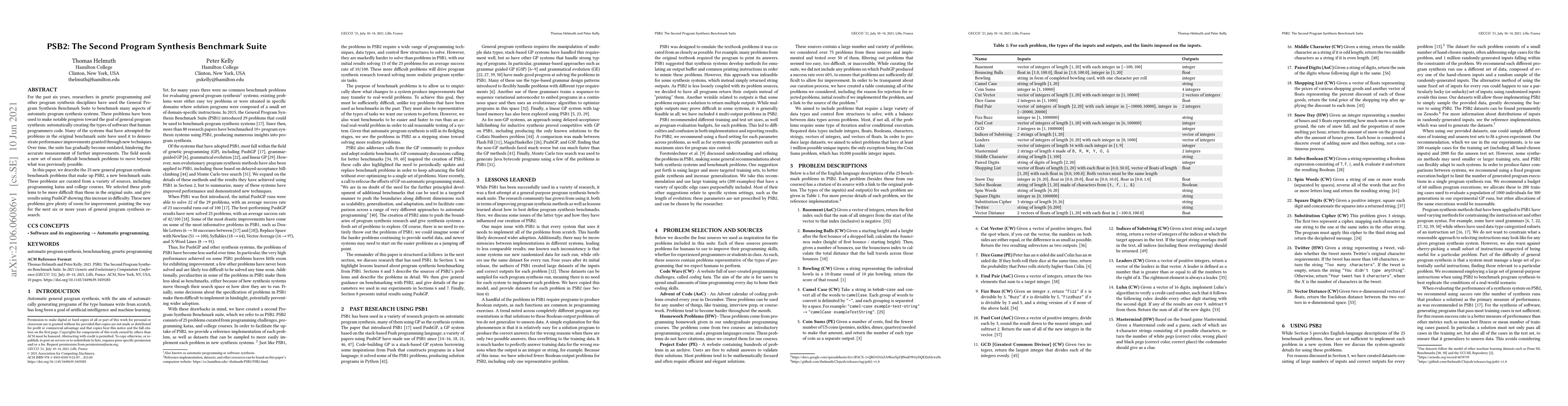 PSB2 introduces 25 new, more challenging program synthesis benchmark problems to replace the outdated original suite, aiming to advance research in automatic program synthesis by providing harder tasks to measure system improvements. PushGP results indicate these new problems are indeed more difficult, offering a fresh direction for future synthesis research.