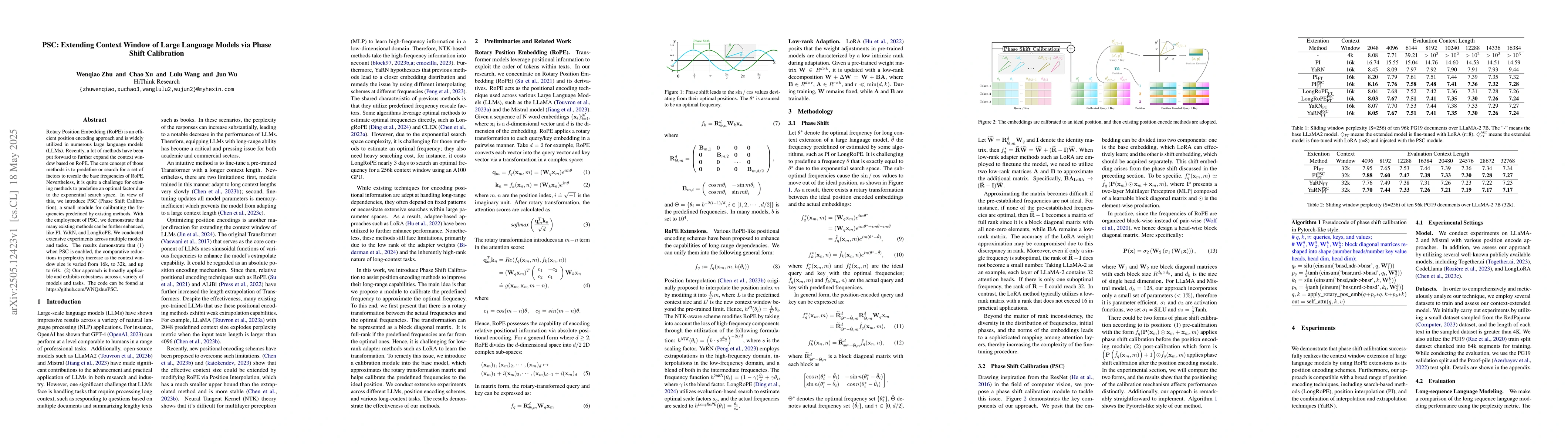 This research paper introduces PSC (Phase Shift Calibration), a module that enhances existing methods for expanding large language models' context windows, achieving improved perplexity reductions across various models and tasks.