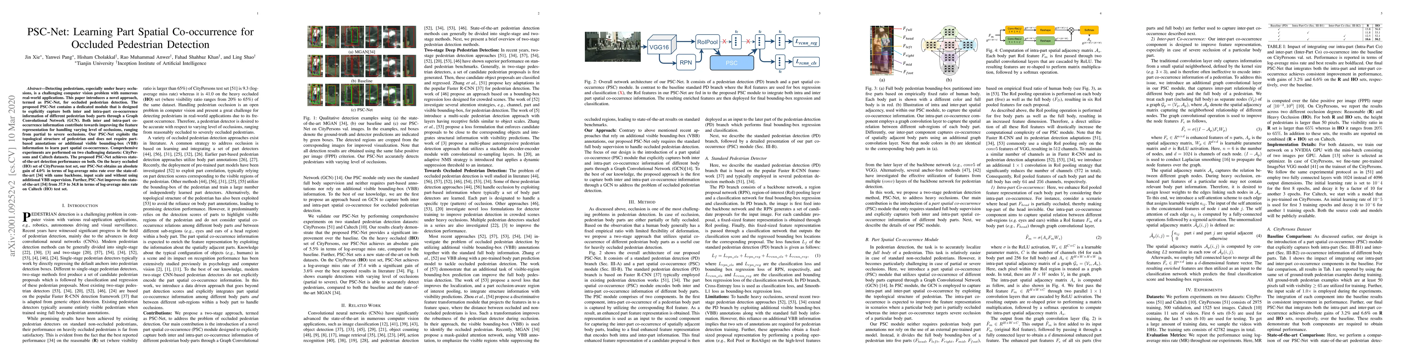 Detecting pedestrians, especially under heavy occlusions, is a challenging computer vision problem with numerous real-world applications. This paper introduces a novel approach, termed as PSC-Net, for occluded pedestrian detection. The proposed PSC-Net contains a dedicated module that is designed to explicitly capture both inter and intra-part co-occurrence information of different pedestrian body parts through a Graph Convolutional Network (GCN). Both inter and intra-part co-occurrence information contribute towards improving the feature representation for handling varying level of occlusions, ranging from partial to severe occlusions. Our PSC-Net exploits the topological structure of pedestrian and does not require part-based annotations or additional visible bounding-box (VBB) information to learn part spatial co-occurrence. Comprehensive experiments are performed on two challenging datasets: CityPersons and Caltech datasets. The proposed PSC-Net achieves state-of-the-art detection performance on both. On the heavy occluded (\textbf{HO}) set of CityPerosns test set, our PSC-Net obtains an absolute gain of 4.0\% in terms of log-average miss rate over the state-of-the-art with same backbone, input scale and without using additional VBB supervision. Further, PSC-Net improves the state-of-the-art from 37.9 to 34.8 in terms of log-average miss rate on Caltech (\textbf{HO}) test set.