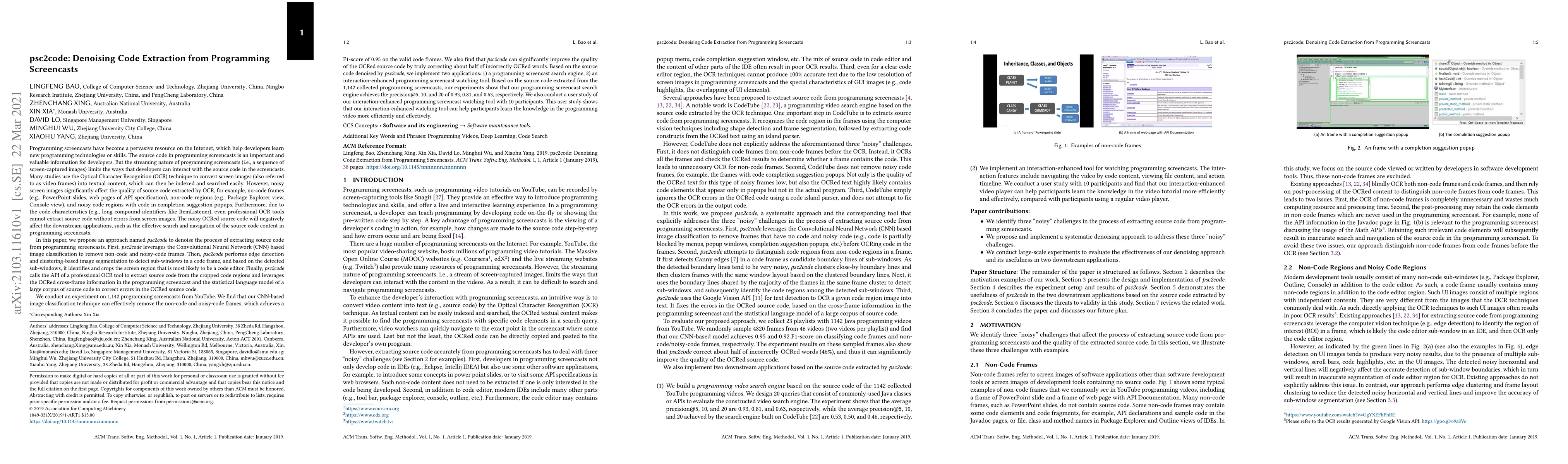 A new approach called psc2code extracts source code from programming screencasts with high accuracy, achieving an F1-score of 0.95 on valid code frames.