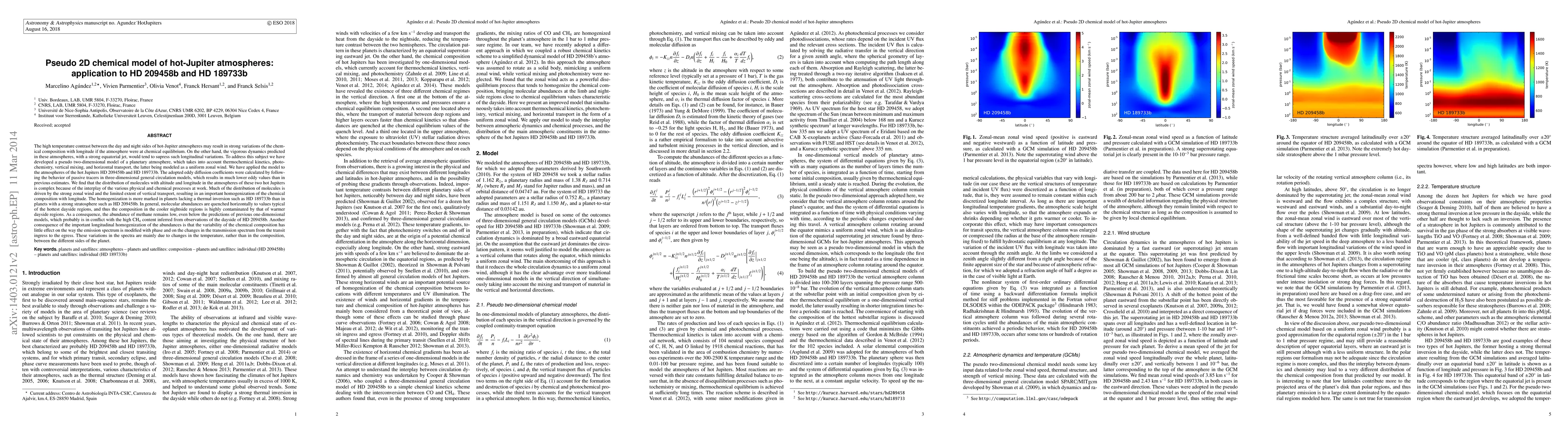 This paper develops a pseudo 2D model for hot Jupiter atmospheres, including thermochemical kinetics and transport processes, and applies it to HD 209458b and HD 189733b. The model shows complex molecular distributions driven by zonal winds and limited vertical transport, leading to low methane abundances and minimal spectral variability due to composition.
