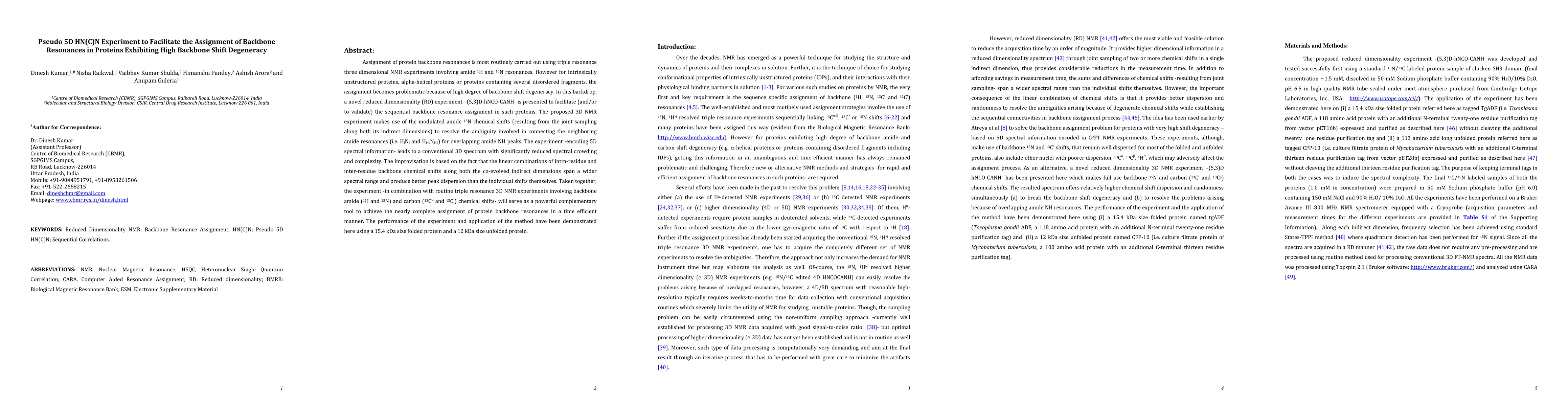 This paper introduces a novel 5D-hNCO-CANH- NMR experiment to resolve backbone resonance assignment challenges in proteins with high shift degeneracy. It leverages modulated amide 15N chemical shifts to improve peak dispersion and reduce spectral crowding, thereby facilitating the assignment of protein backbone resonances efficiently.