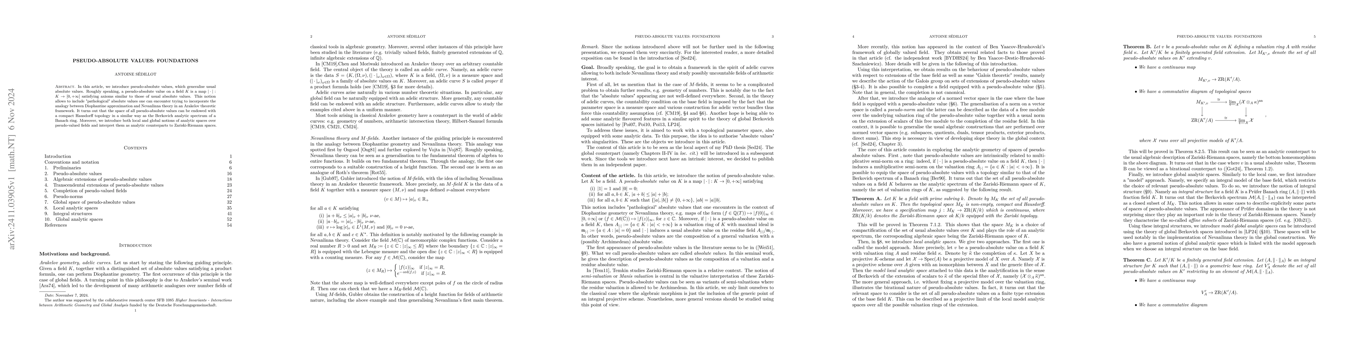 This paper introduces pseudo-absolute values as generalizations of usual absolute values, enabling the inclusion of "pathological" cases arising in Diophantine approximation and Nevanlinna theory. It also explores topologies on the space of pseudo-absolute values and defines analytic spaces over pseudo-valued fields.