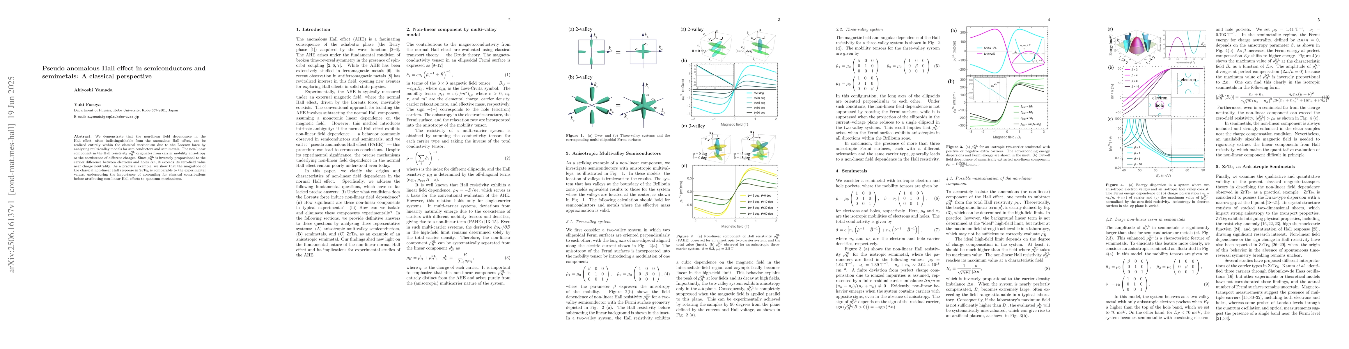We demonstrate that the non-linear field dependence in the Hall effect, often indistinguishable from the anomalous Hall effect, can be realized entirely within the classical mechanism due to the Lorentz force by analyzing multi-valley models for semiconductors and semimetals. The non-linear component in the Hall resistivity $\rho_H^{\rm NL}$ originates from carrier mobility anisotropy or the coexistence of different charges. Since $\rho_H^{\rm NL}$ is inversely proportional to the carrier difference between electrons and holes $\Delta n$, it exceeds its zero-field value near charge neutrality. As a practical example, we show that the magnitude of the classical non-linear Hall response in ZrTe$_5$ is comparable to the experimental values, underscoring the importance of accounting for classical contributions before attributing non-linear Hall effects to quantum mechanisms.