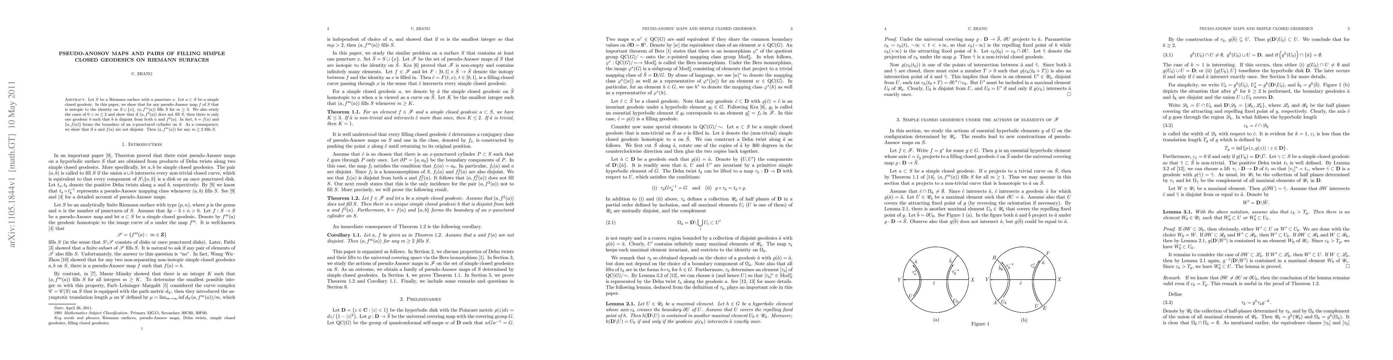 This paper investigates how pseudo-Anosov maps on Riemann surfaces interact with simple closed geodesics, showing that certain pairs fill the surface under repeated iterations of the map.