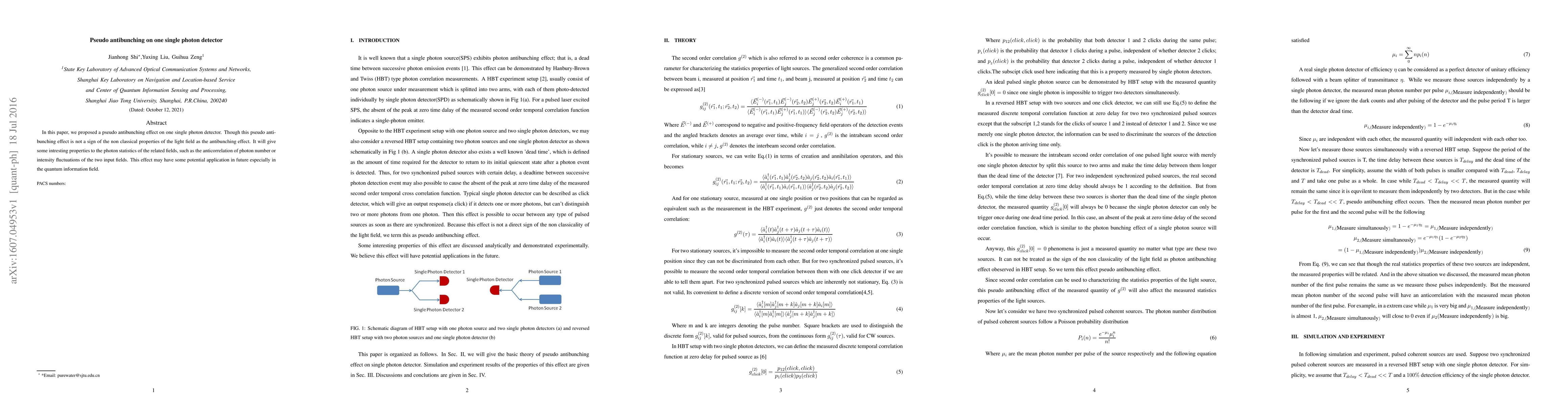 This paper proposes a pseudo antibunching effect observed on a single photon detector, which does not indicate non-classical light properties but introduces interesting photon statistics, including anticorrelations in photon number or intensity fluctuations of input fields, potentially useful in quantum information applications.