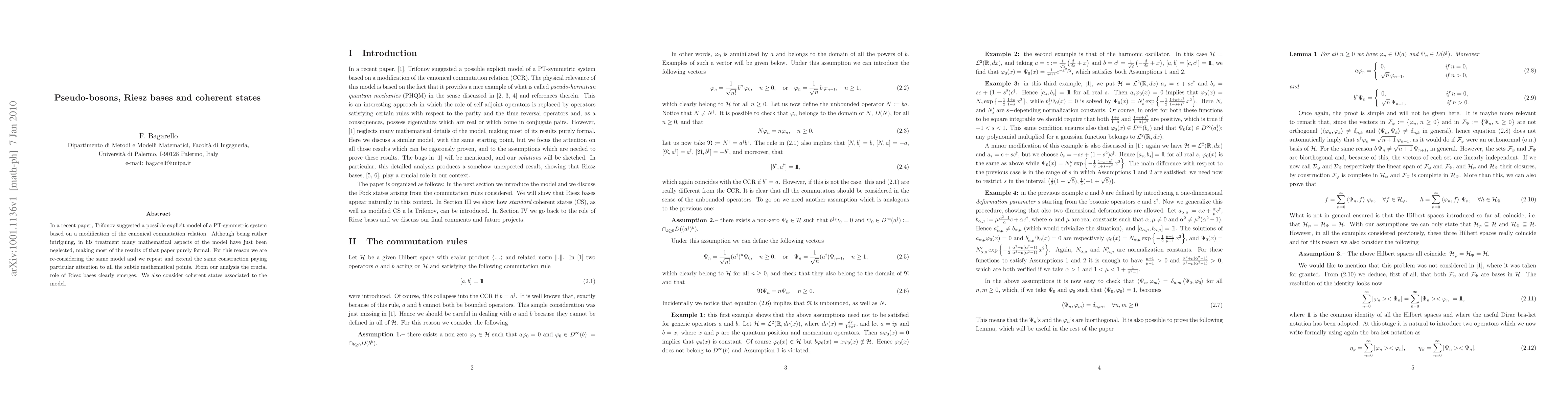 In a recent paper, Trifonov suggested a possible explicit model of a PT-symmetric system based on a modification of the canonical commutation relation. Although being rather intriguing, in his treatment many mathematical aspects of the model have just been neglected, making most of the results of that paper purely formal. For this reason we are re-considering the same model and we repeat and extend the same construction paying particular attention to all the subtle mathematical points. From our analysis the crucial role of Riesz bases clearly emerges. We also consider coherent states associated to the model.