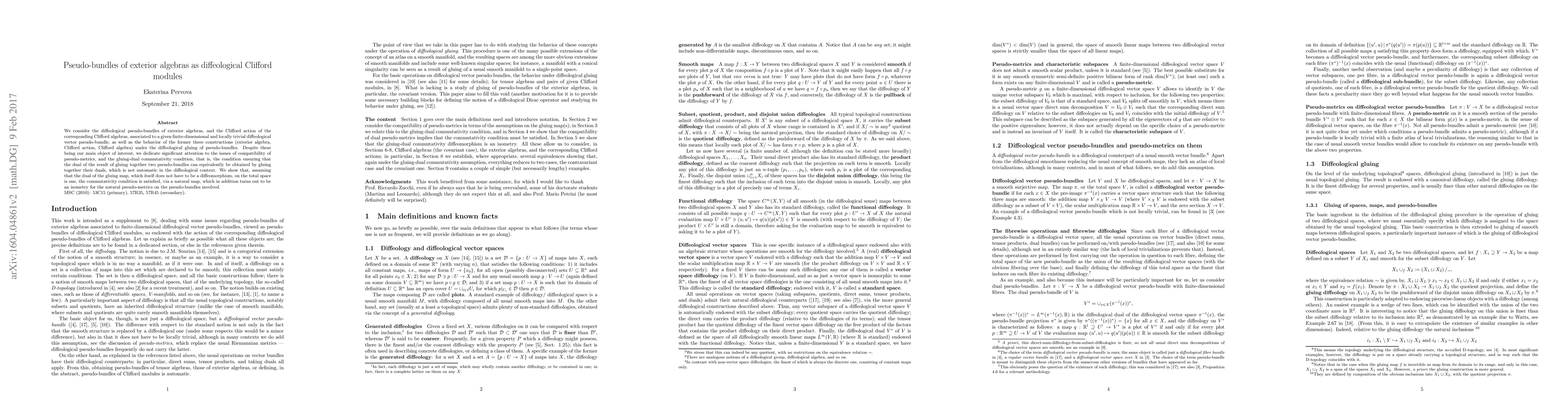 This paper explores the relationship between pseudo-bundles of exterior algebras and Clifford modules within the context of diffeology, focusing on the compatibility of pseudo-metrics and the gluing-dual commutativity condition. It demonstrates that under certain conditions, the dual of glued pseudo-bundles can be obtained by gluing their duals, facilitated by a natural isometry.