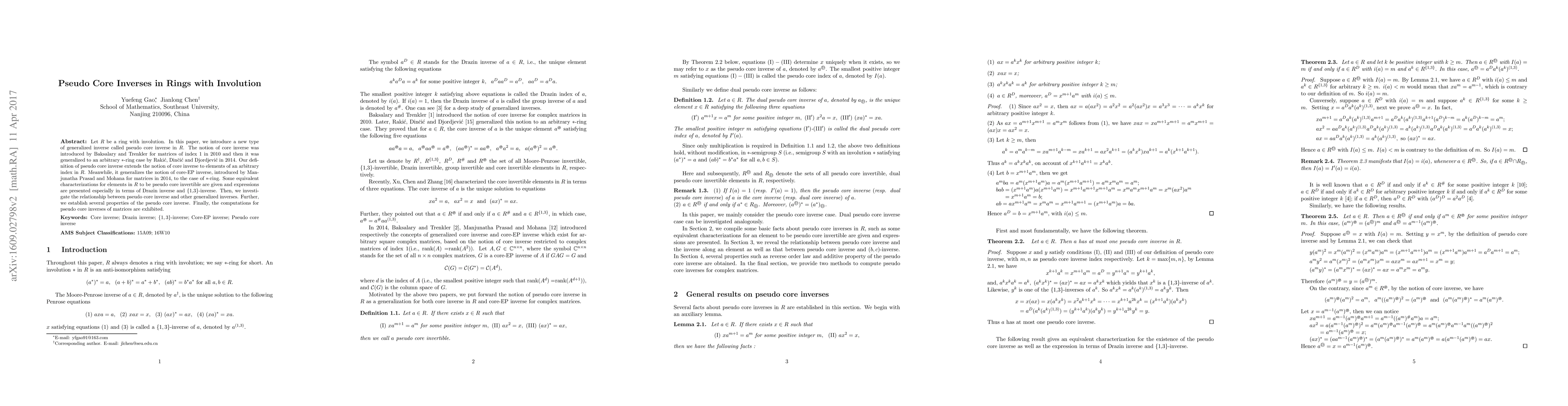 This paper introduces the concept of pseudo core inverse in rings with involution, extending the notion of core inverse to elements of arbitrary index. It also generalizes the core-EP inverse to the $*$-ring case and investigates its properties, relationships with other generalized inverses, and computational methods for matrices.