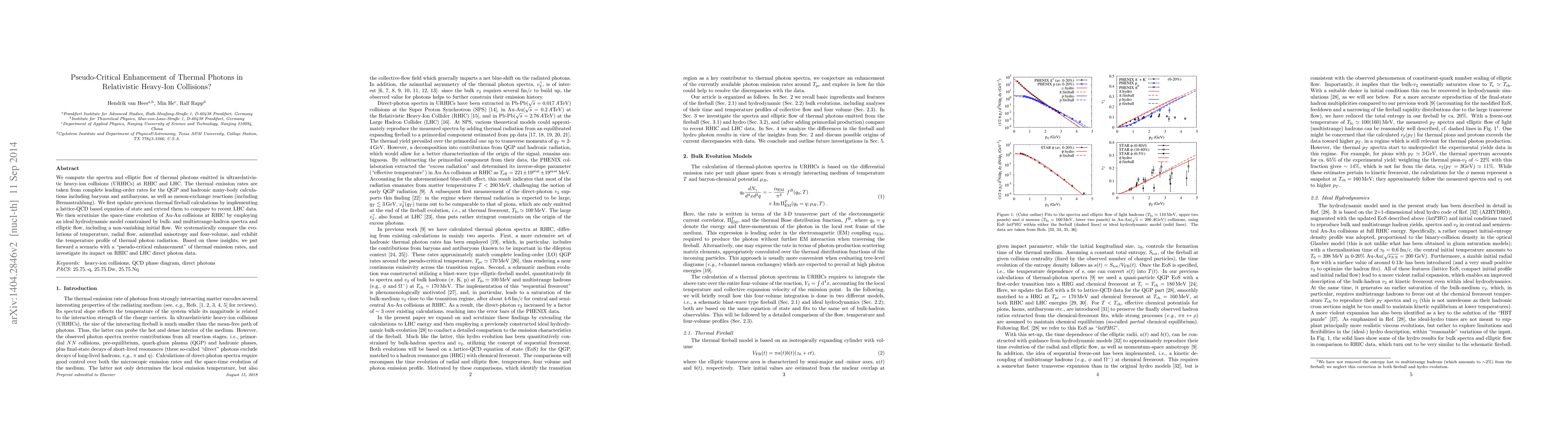 We compute the spectra and elliptic flow of thermal photons emitted in ultrarelativistic heavy-ion collisions (URHICs) at RHIC and LHC. The thermal emission rates are taken from complete leading-order rates for the QGP and hadronic many-body calculations including baryons and antibaryons, as well as meson-exchange reactions (including Bremsstrahlung). We first update previous thermal fireball calculations by implementing a lattice-QCD based equation of state and extend them to compare to recent LHC data. We then scrutinize the space-time evolution of Au-Au collisions at RHIC by employing an ideal hydrodynamic model constrained by bulk- and multistrange-hadron spectra and elliptic flow, including a non-vanishing initial flow. We systematically compare the evolutions of temperature, radial flow, azimuthal anisotropy and four-volume, and exhibit the temperature profile of thermal photon radiation. Based on these insights, we put forward a scenario with a "pseudo-critical enhancement" of thermal emission rates, and investigate its impact on RHIC and LHC direct photon data.