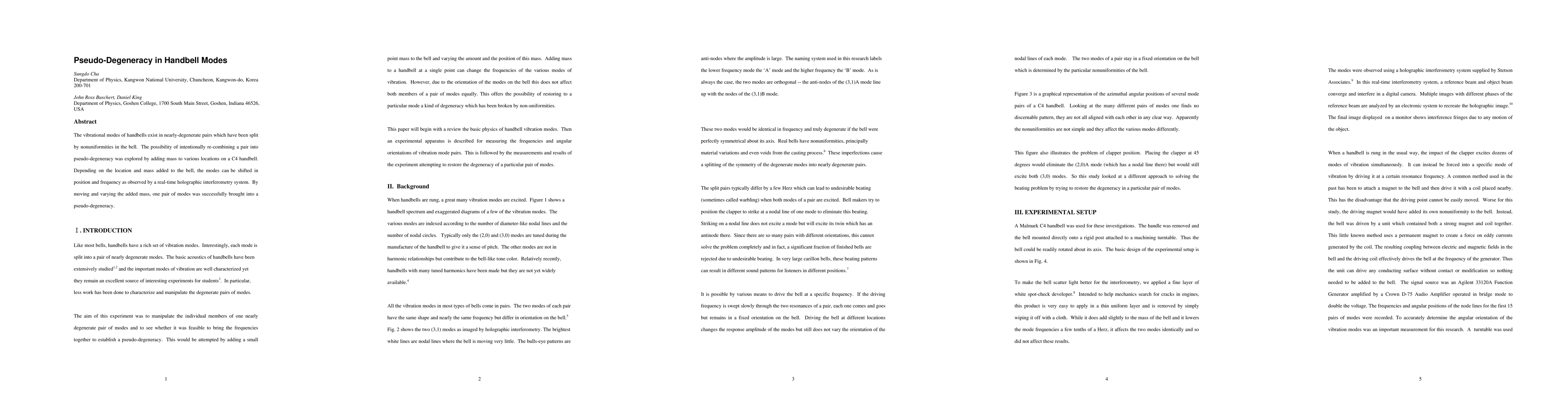 The vibrational modes of handbells exist in nearly-degenerate pairs which have been split by nonuniformities in the bell. The possibility of intentionally re-combining a pair into pseudo-degeneracy was explored by adding mass to various locations on a C4 handbell. Depending on the location and mass added to the bell, the modes can be shifted in position and frequency as observed by a real-time holographic interferometry system. By moving and varying the added mass, one pair of modes was successfully brought into a pseudo-degeneracy.