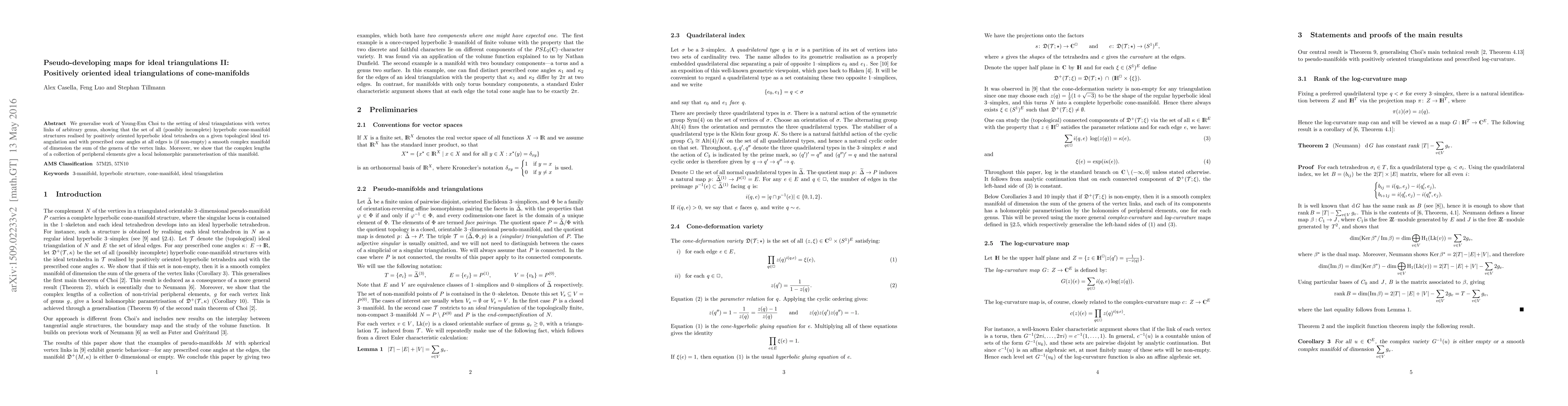 We generalise work of Young-Eun Choi to the setting of ideal triangulations with vertex links of arbitrary genus, showing that the set of all (possibly incomplete) hyperbolic cone-manifold structures realised by positively oriented hyperbolic ideal tetrahedra on a given topological ideal triangulation and with prescribed cone angles at all edges is (if non-empty) a smooth complex manifold of dimension the sum of the genera of the vertex links. Moreover, we show that the complex lengths of a collection of peripheral elements give a local holomorphic parameterisation of this manifold.