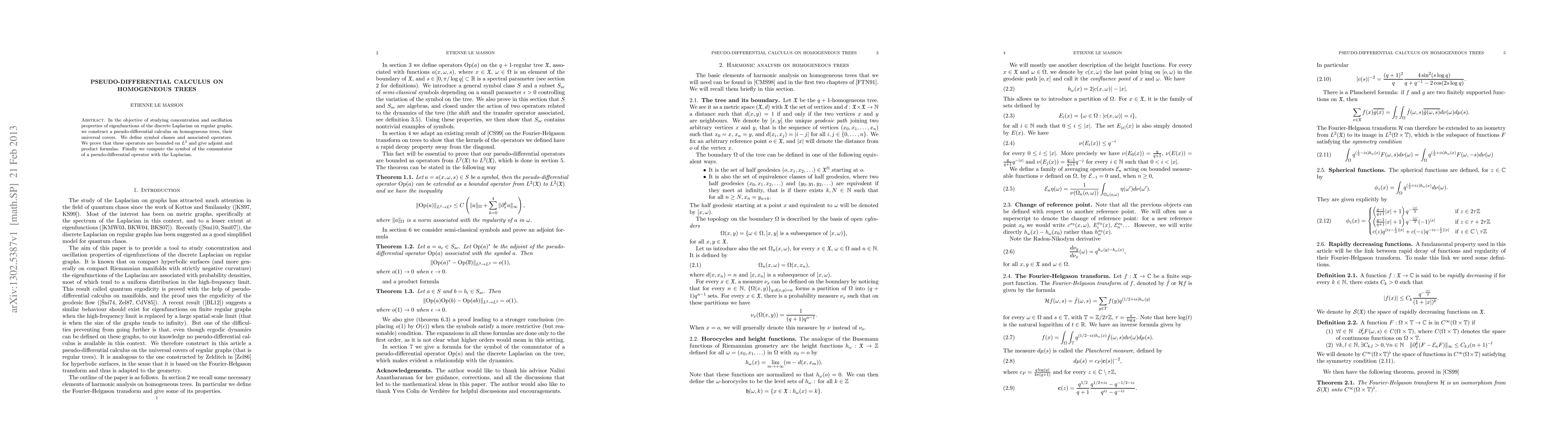 This paper constructs a pseudo-differential calculus on homogeneous trees to study the properties of eigenfunctions of the discrete Laplacian. It defines symbol classes and associated bounded operators on L^2, provides adjoint and product formulas, and computes the symbol of the commutator of a pseudo-differential operator with the Laplacian.