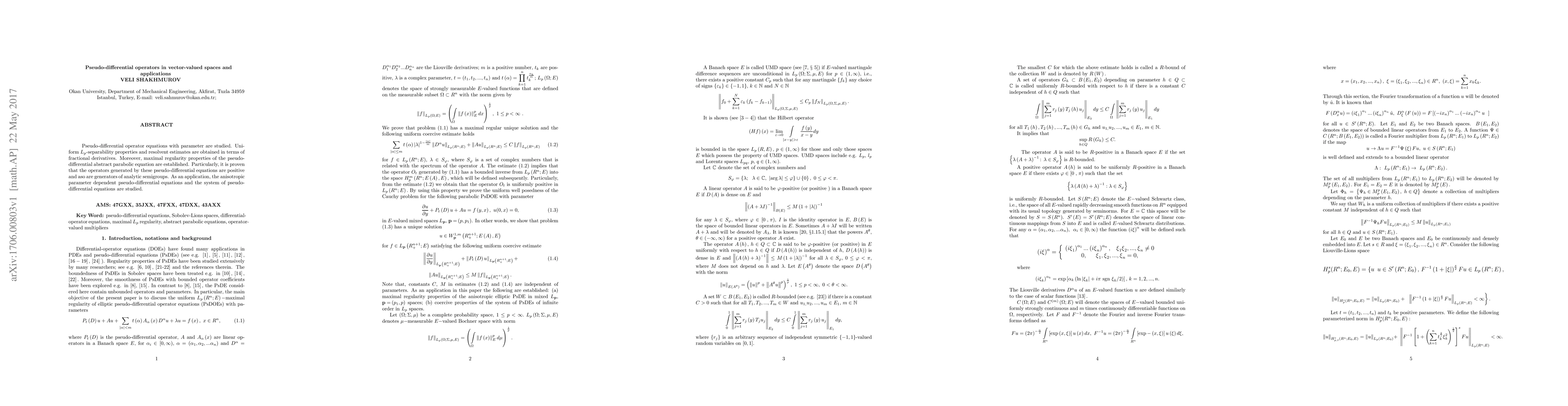 This paper investigates pseudo-differential operator equations with parameters, establishing uniform separability and resolvent estimates using fractional derivatives. It proves maximal regularity and shows the operators generate positive, analytic semigroups, with applications to anisotropic and system-based pseudo-differential equations.