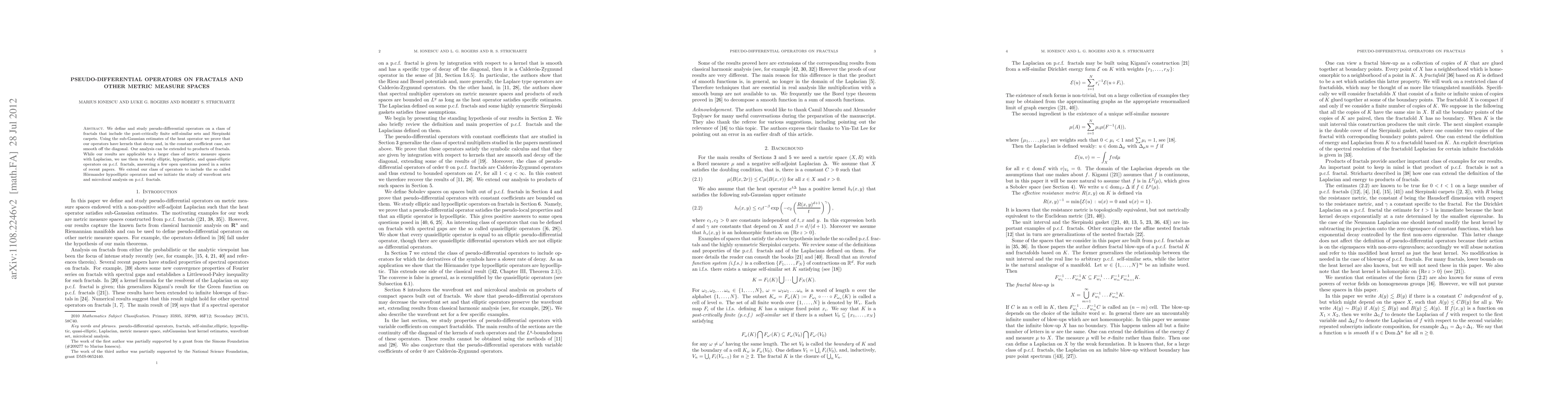 This paper defines pseudo-differential operators on post-critically finite self-similar fractals and Sierpinski carpets, proving their kernels decay and are smooth off the diagonal. The study extends to product fractals and metric measure spaces, addressing elliptic, hypoelliptic, and quasi-elliptic operators, and initiates microlocal analysis on these fractals.