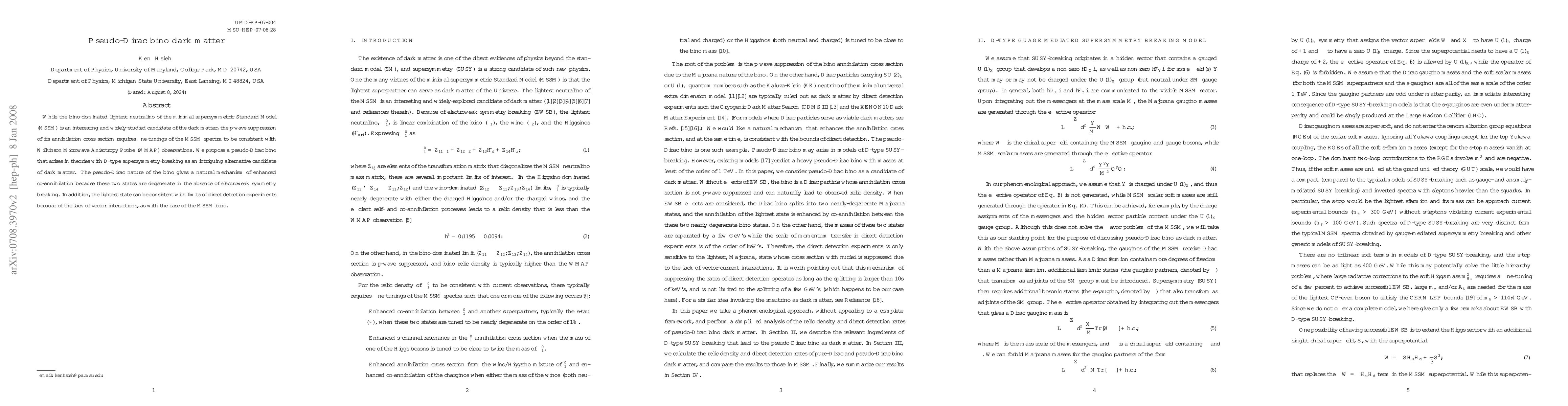 This paper proposes a pseudo-Dirac bino as an alternative dark matter candidate in the minimal supersymmetric Standard Model, addressing the p-wave suppression issue. The pseudo-Dirac nature allows for enhanced co-annihilation and compatibility with direct detection limits due to the absence of vector interactions.