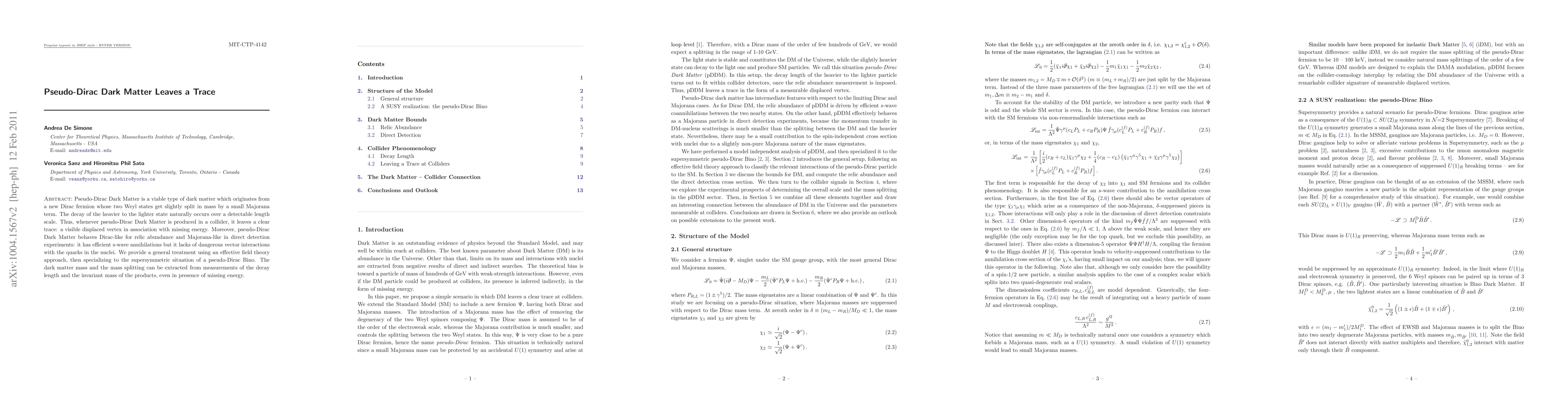 This paper explores Pseudo-Dirac Dark Matter, a new type of dark matter originating from a slightly split Dirac fermion, which decays over a detectable length scale, leaving a displaced vertex trace in colliders. It behaves Dirac-like for relic abundance and Majorana-like in direct detection, with mass and splitting extractable from decay length and product mass measurements.